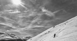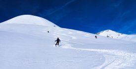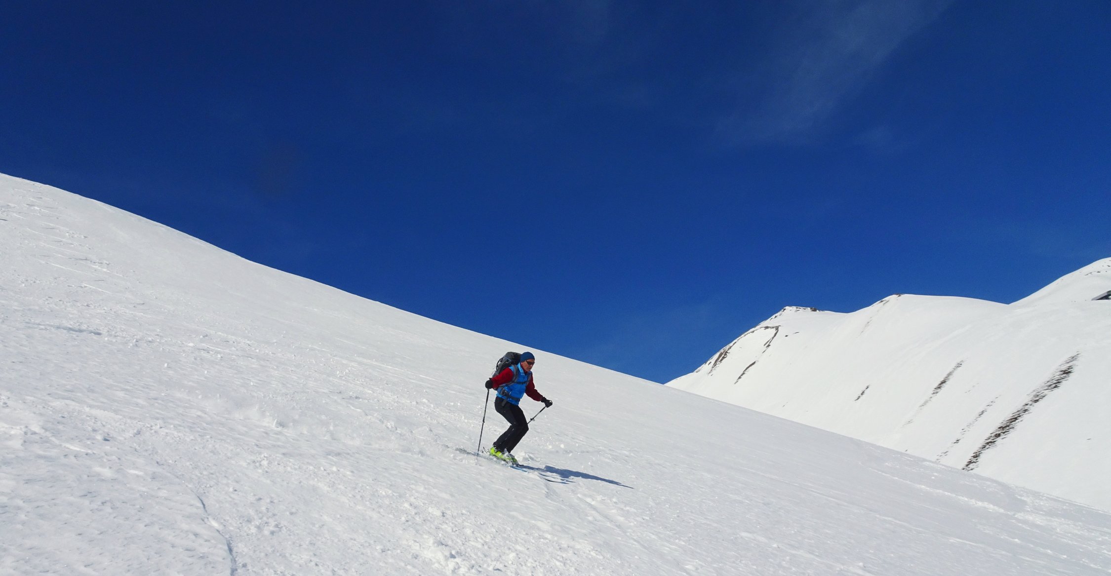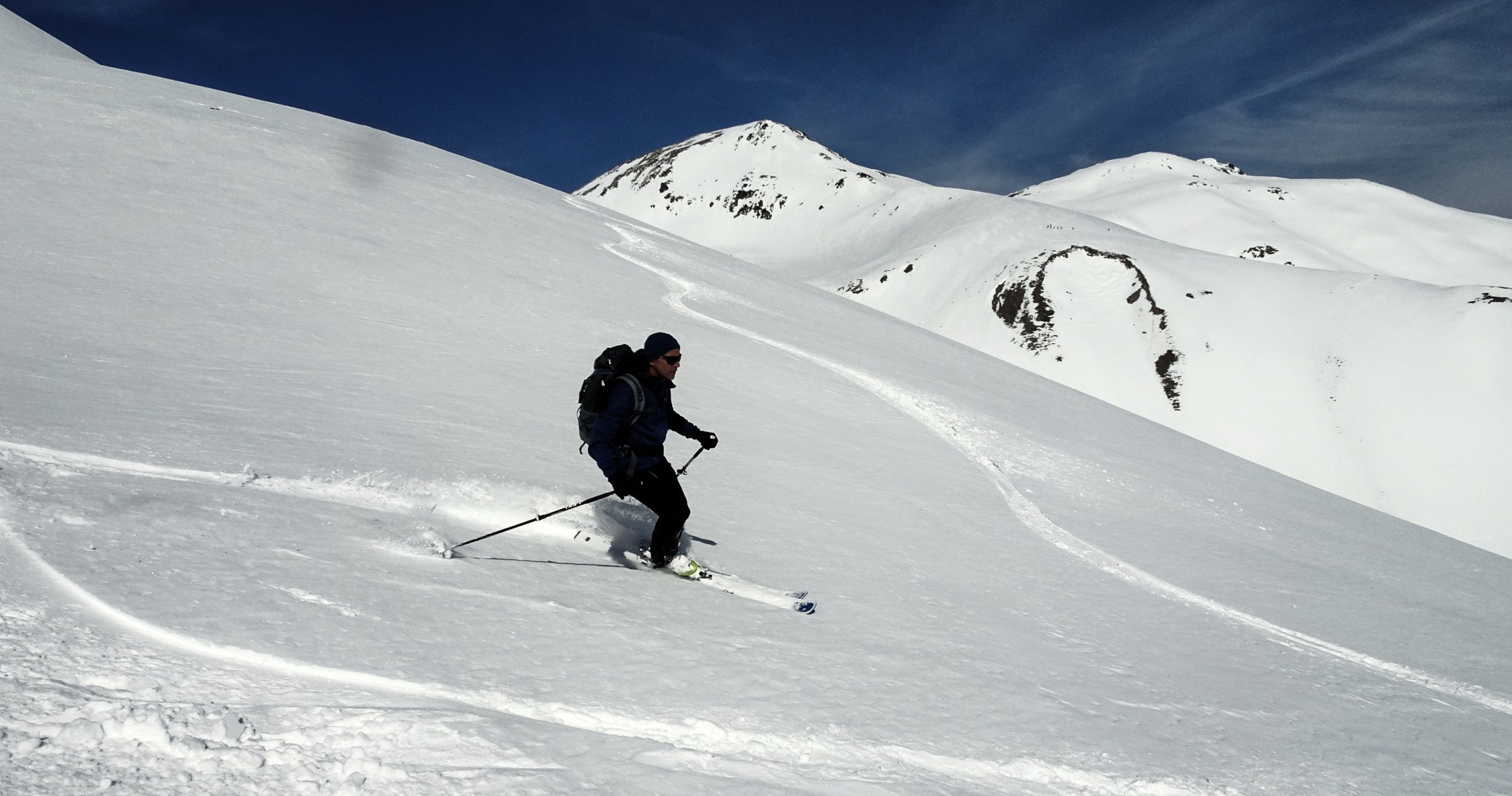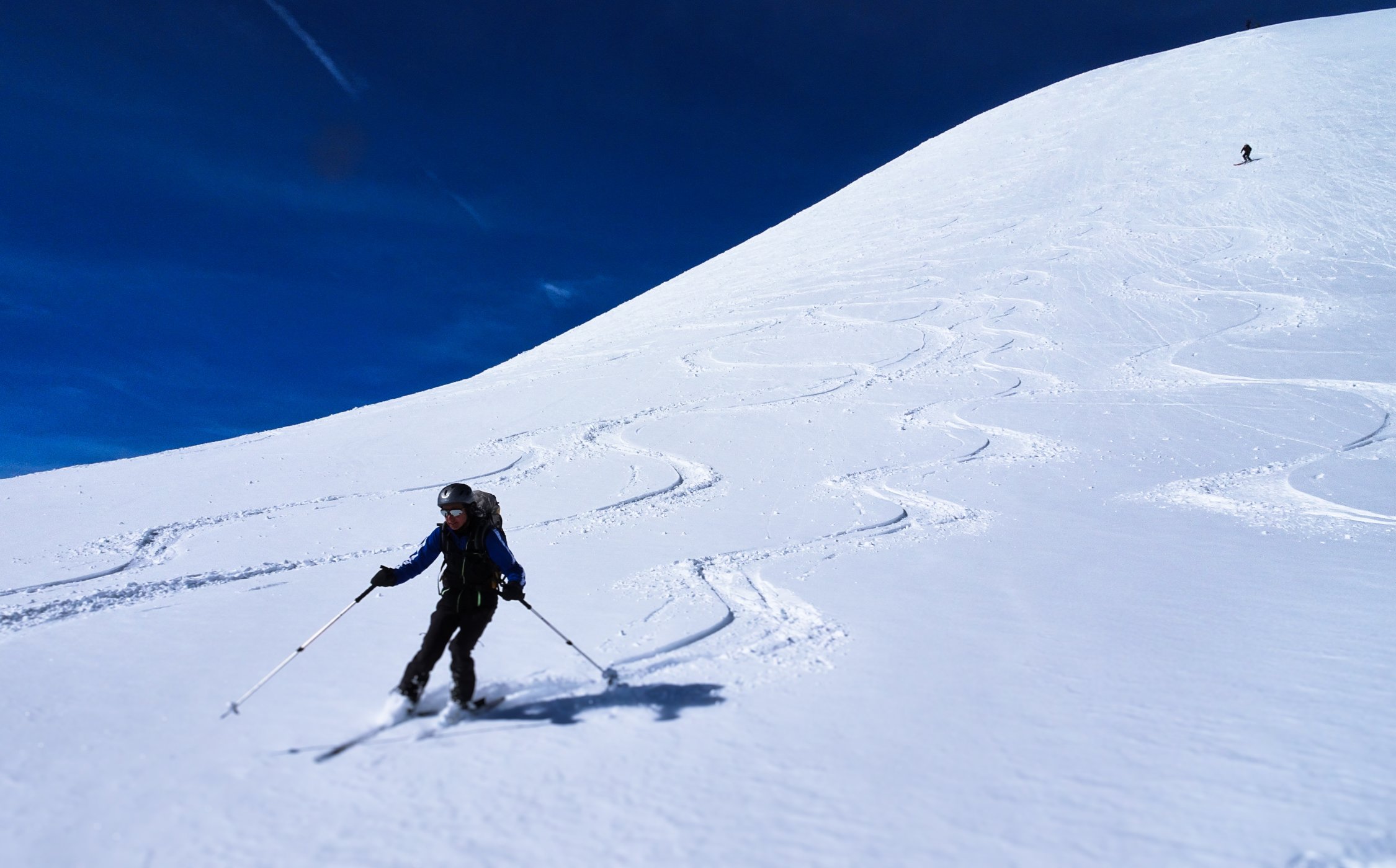 Was für ein Tag - herrlicher Sonnenschein und frischer fast unverspurter Pulverschnee. Im Aufstieg musste wir wegen Stollen an den Fellen etwas beissen. Die Abfahrt durch die Steilhänge des Belvair hat uns dafür mehr als entschädigt.