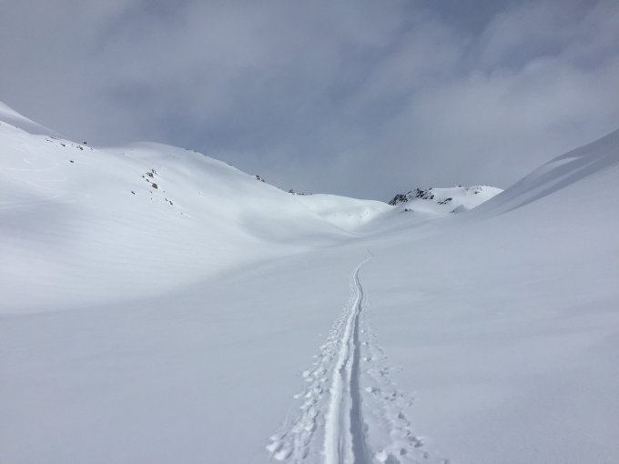 verhältnisse angetroffen. Oben tragender Deckel, nicht zu hart. Weiter unten weitgehend Pulver mit wenig Deckel. Zu untetst dann schwerer Nassschnee. Es hat heute einfach alles gehabt.
