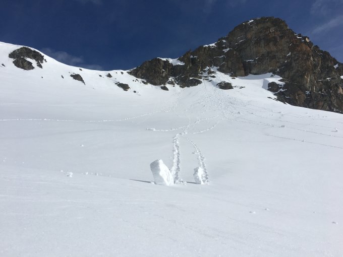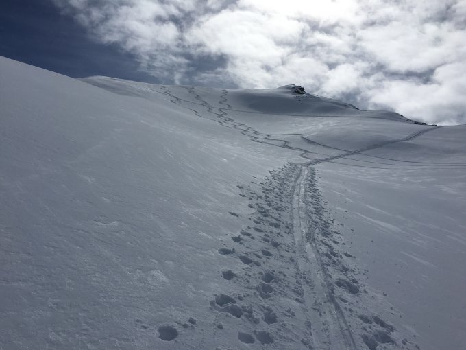 Im oberen Bereich und auf der kurzen Abfahrt zum Parkplatz beim Ospizio toller Pulverschnee. Ab dem Leg Grevesalvas an allen nach Süden ausgerichteten Hängen oft Harsch, der meist aber weich und recht gut fahrbar war. Heute waren entlang des Aufstiegs noch sehr wenige Abfahrtsspuren.