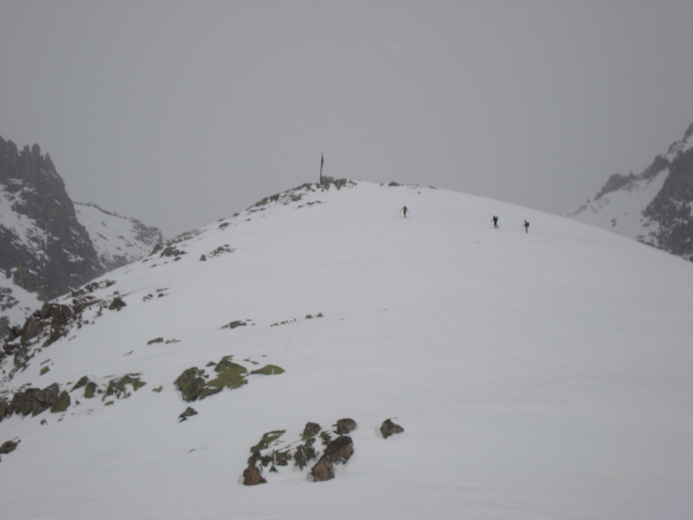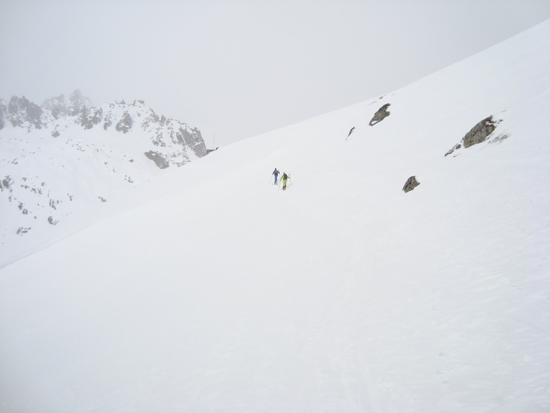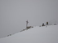 Die Sicht war im weiteren Aufstieg noch nicht so schlecht. Am Gipfel jedoch, machte es dann zu. Die Abfahrt zum Tiefenbach erfolgte dann leider bei sehr schlechten Sichtverhältnissen. Der Schnee war oben wechselhaft, zwischen hart krustig und eingewehten Pulver.