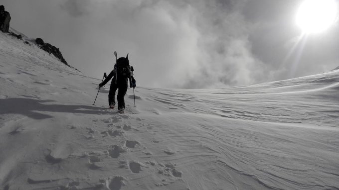 Viel Neuschnee in der Silvretta! Haben durch 20-30 Centi Neuschnee gespurt, der aber aktuell stark verfrachtet wird.