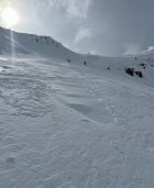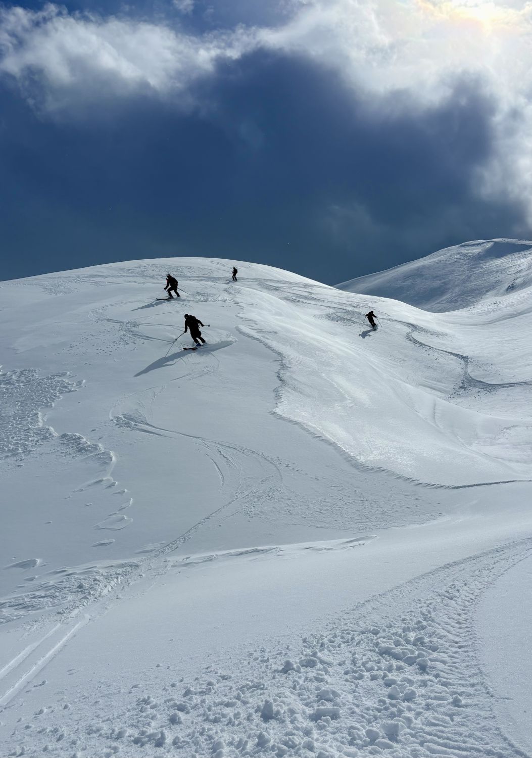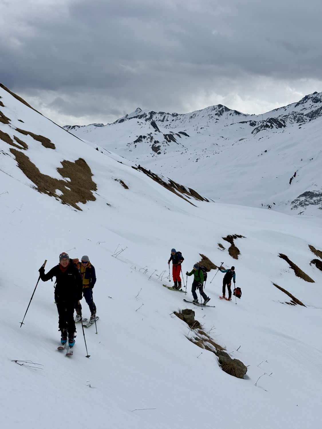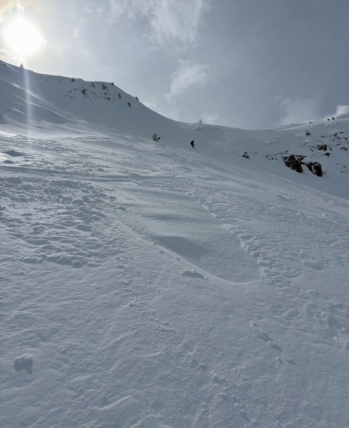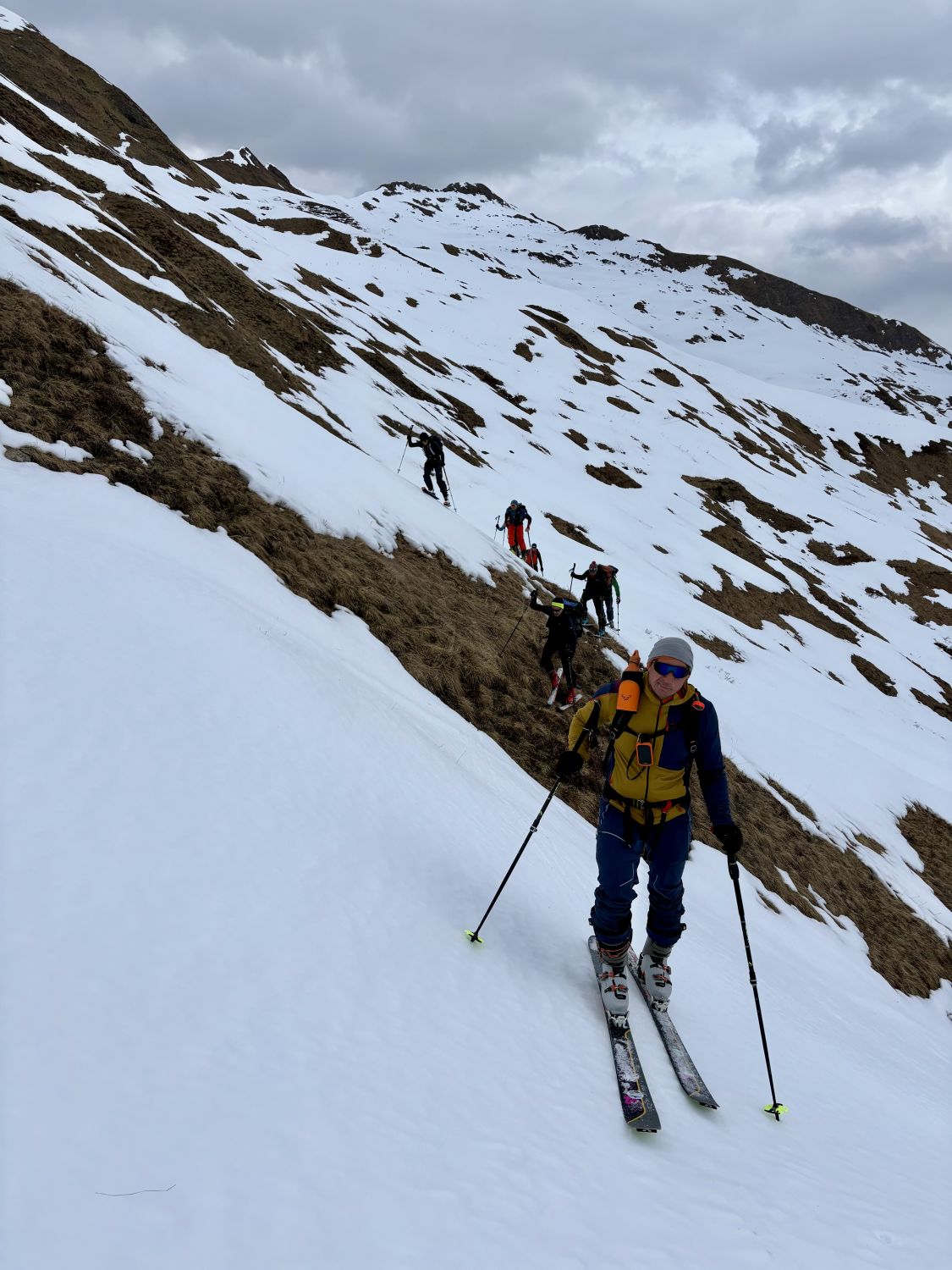 Es hat nicht aufgefirnt aber Schnee war besser als erwartet. Abfahrt über Heuberge und zurück bis Strassberger Furggeli.