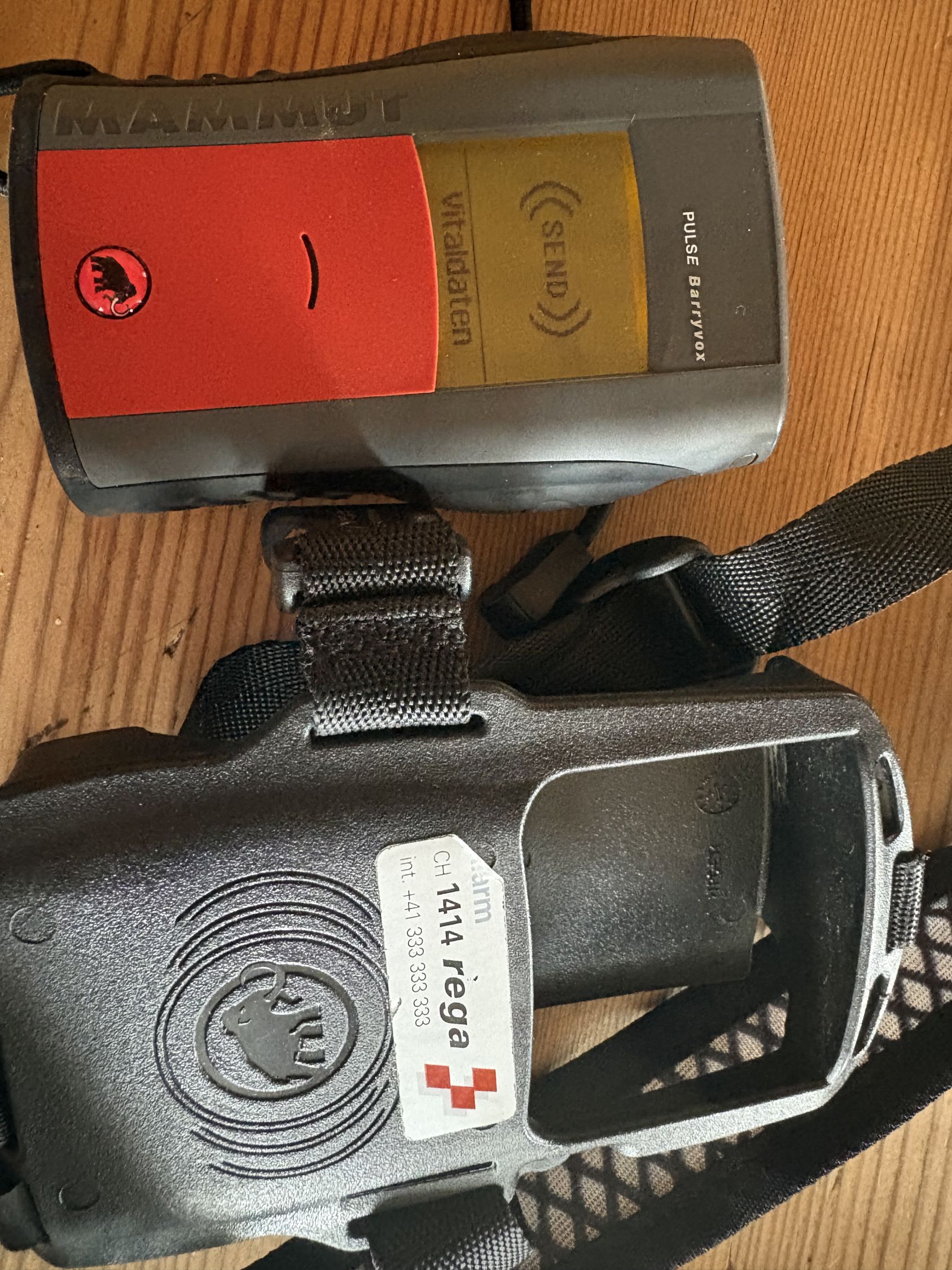 Achtung: wir haben am Gipfelsteinmann einen eingeschalteten Barryvox Pulse1 Pieps gefunden. (Schwarz mit REGA Aufkleber).