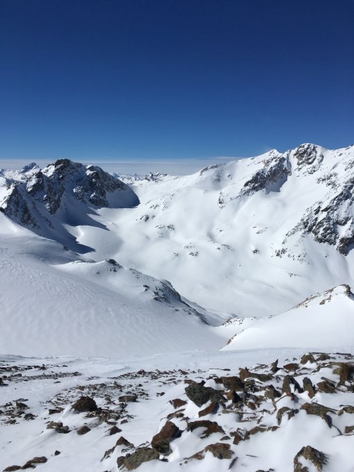 Dank dem gut 20 cm Neuschnee perfekte Tour. Der Piz Traunter Ovas wird selten bestiegen, zu unrecht. Die Nordflanke des oft besuchten Piz Surgonda ist spektakulär, siehe Bild. Sehr schöne Abfahrt ab Fuorcla Margun. Corn Suvretta und Corn Chamuotsch wurden auch besucht. Alle Gipfel empfehlenswert.