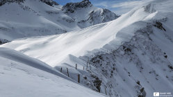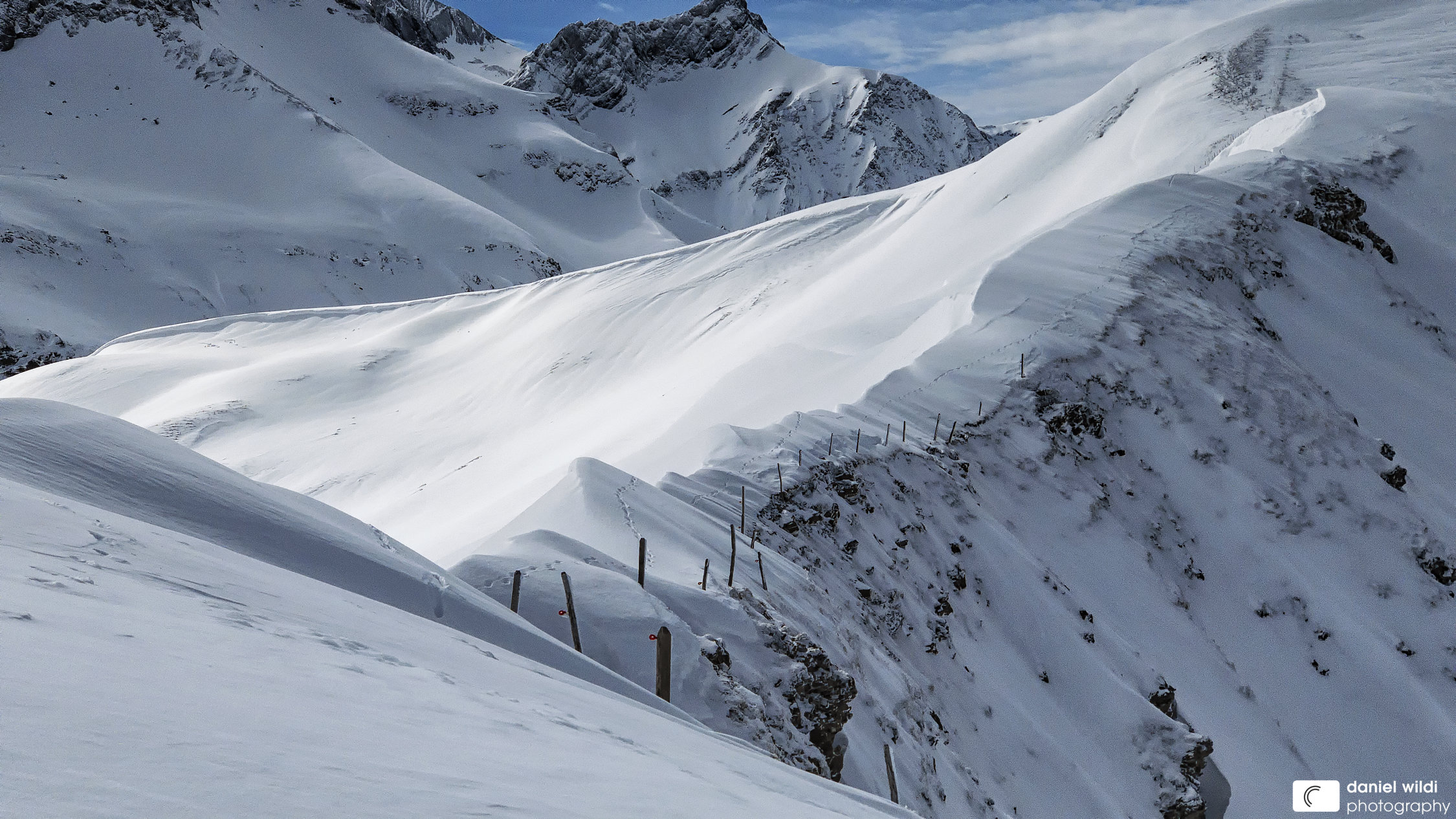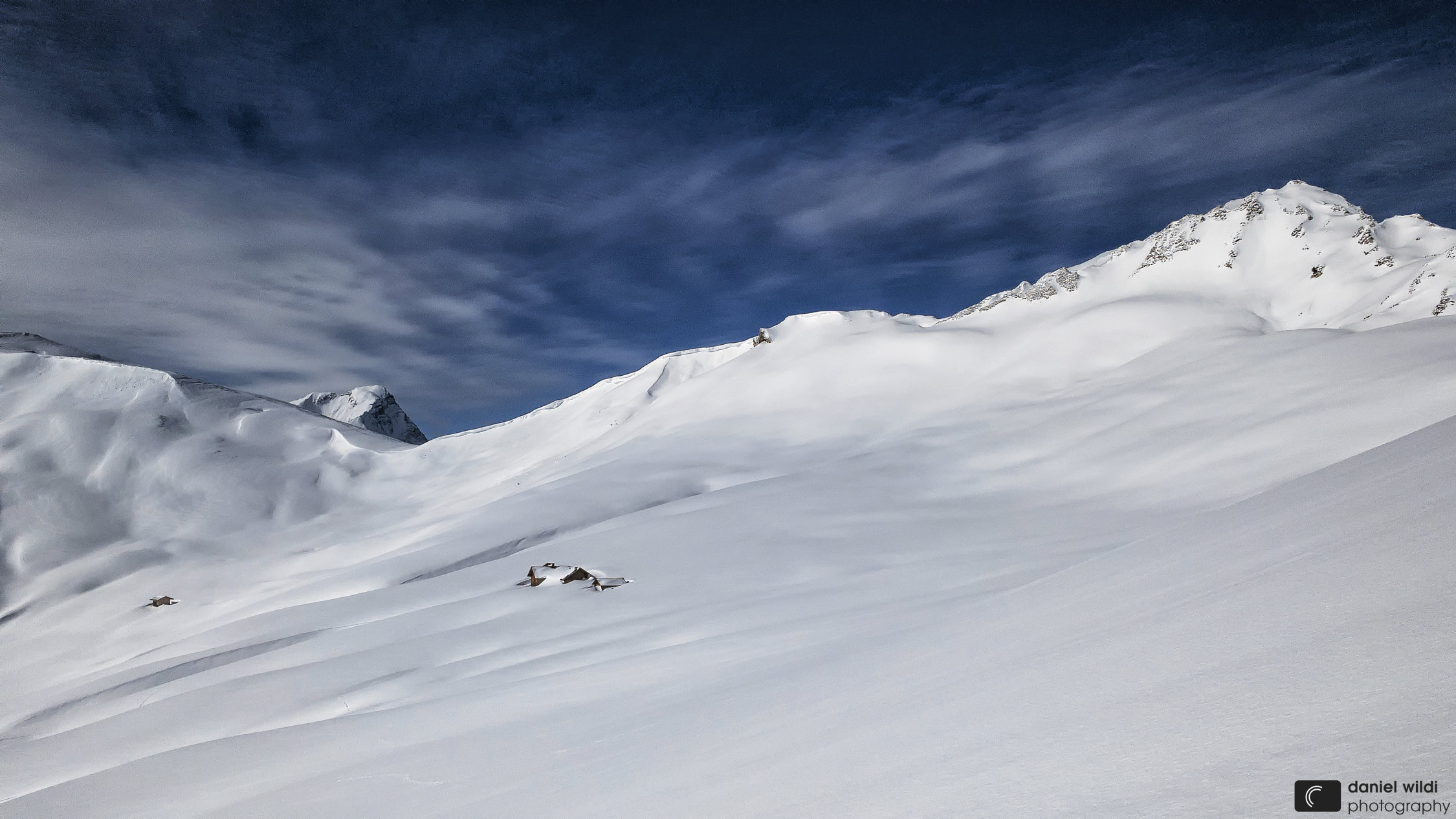 Nach dem Leiterli Richtung Betelbergmeder, Stüblenipass relativ viel Neu- und Triebschnee. Gelände aber relativ "sanft", kein Problem, auch der Aufstieg auf den Stüblenipass ohne Probleme. Auf der Luvseite dann abgeblasen, z.T. eisig, gefrorene Grasbüschel und einzelne Steine.