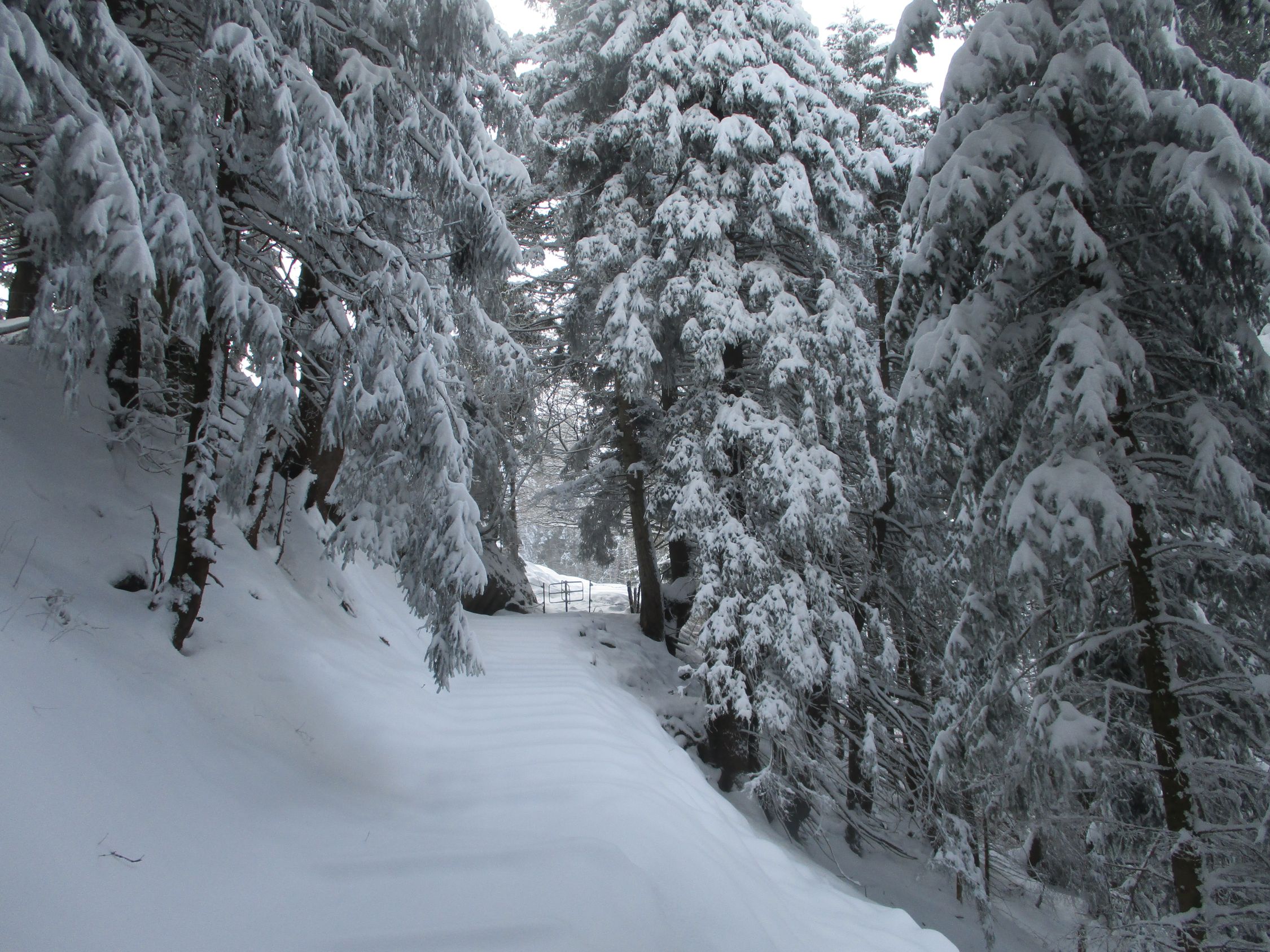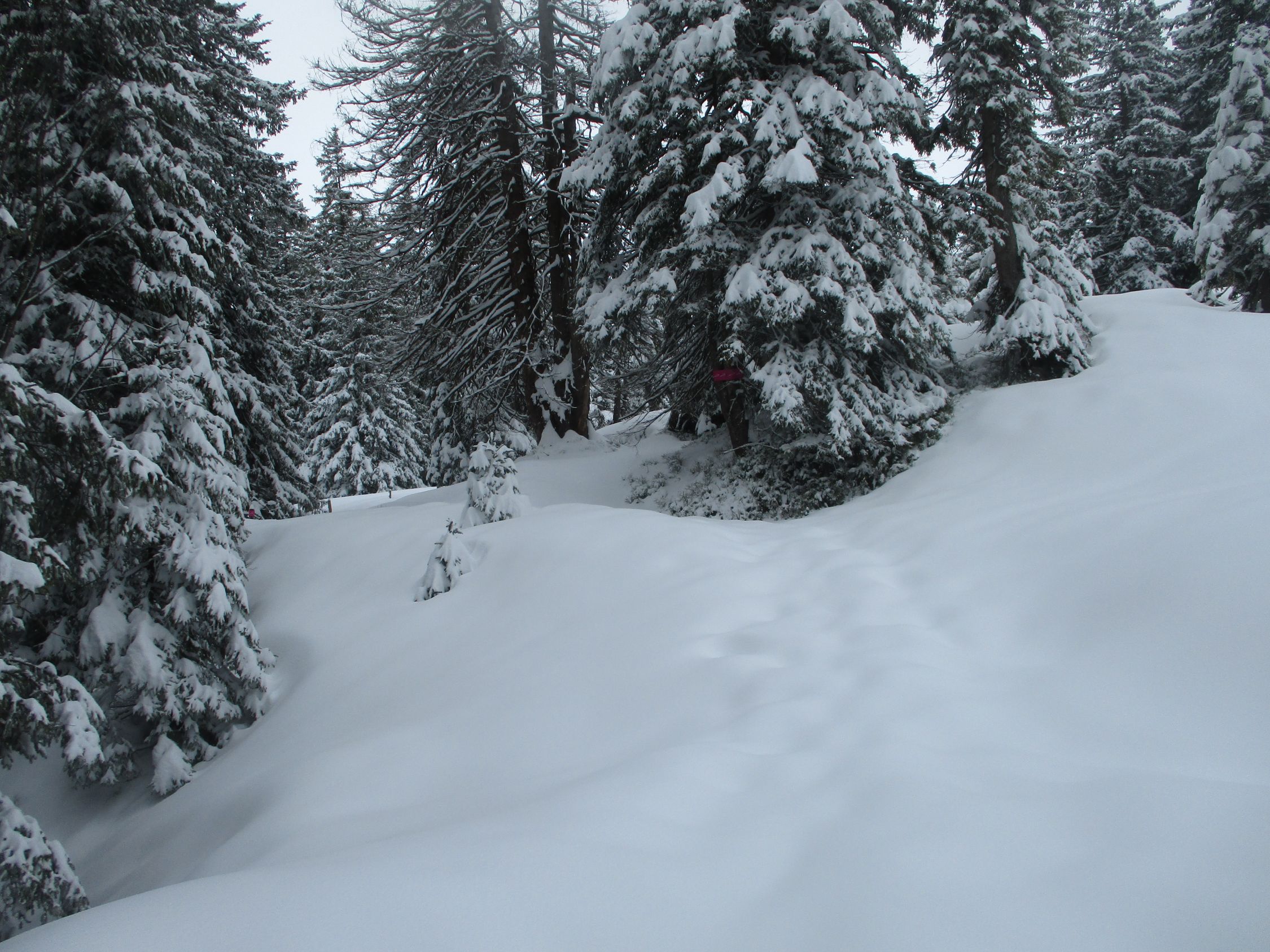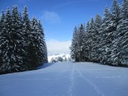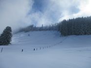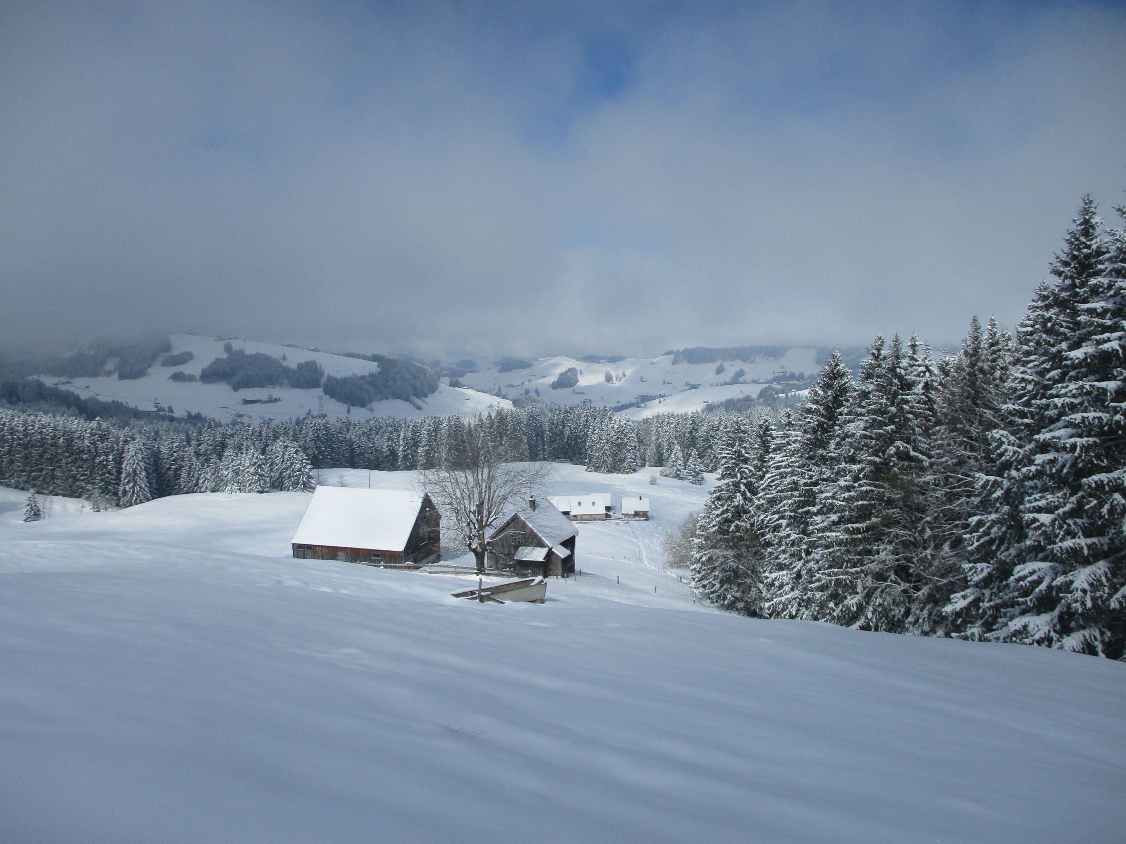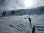 Tourenbeginn in Jakobsbad 9.20 h. Unten bis 10 cm Neuschnee, auf dem Kamm etwas über 20 cm. Konsistenz: pulvrig, meist im Umwandlungsprozess zu schwer werdend.