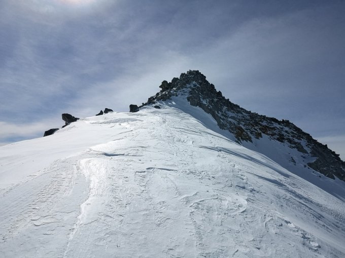 Aufstieg ab Skidepot: Wir hatten Steigeisen dabei. Die hätte es aber nicht gebraucht. War insgesamt problemlos.