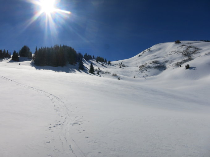 Durchgehend Schnee vom Parkplatz bis Gipfel. Alle Aggregatzustände von Schnee angetroffen. Von sehr nass über hart, gedeckelten Pulver, Pulver und viele Wasserrinnen im unteren Teil. Bei den heutigen Lawinenverhältnissen aber ne gute Tour. Auf dem Rückweg noch auf den Mont Chevreuils. Beim Aufstieg nur kurze Tragestellen. Bei der Abfahrt waren die unteren 200 hm dann aber aper. Sehr zerfahren aber v.a. im Mittelteil gut zu fahren. Bestes Wetter und Sicht.