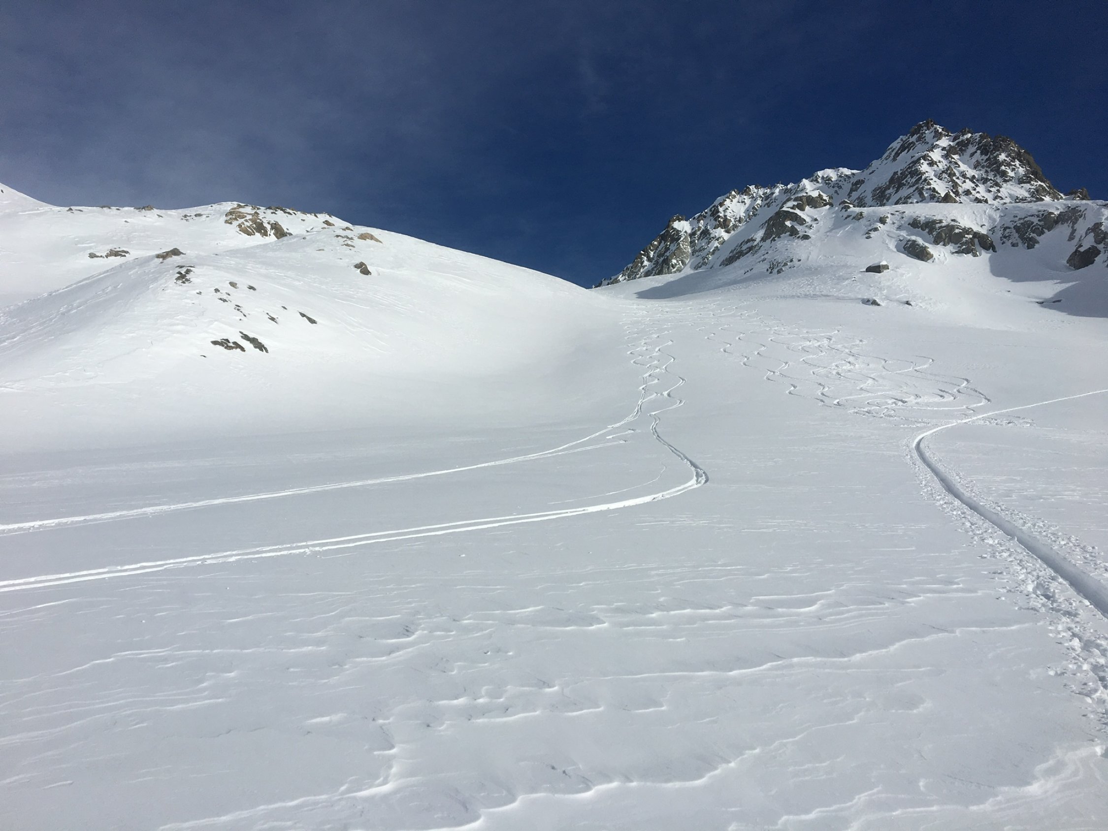 Schöne Pulverabfahrt zurück zur Keschhütte.