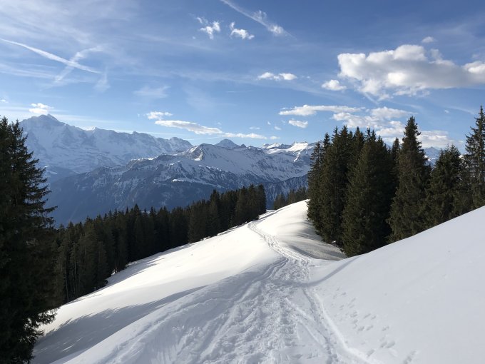 In der Abfahrt auf der gleichen Route um 10.30 Uhr butterzarter Sulz mit leichter Bremswirkung, einzig in der Waldpassage oberhalb Chüematte etwas einbrechend.