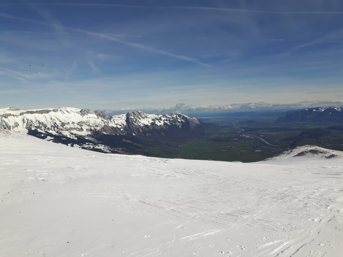 Tourstart war um ca. 8h beim Berghaus Malbun; gleichzeitig befanden sich ca. 12 andere Tourengeher in unterschiedlichen Gruppen im Aufstieg. Auf der ersten Hälfte des Anstiegs zum Sisizgrat war der Schnee neben der Spur schon ca. 20 cm durchgeweicht; nach der Baumgrenze war es dann eine gefrorene Oberfläche die aber nicht blank war und man so sehr gut und zügig aufsteigen konnte. Der Abstieg vom Sisizgrat war oben komplett abgeblasen. So entschieden wir uns hier anfangs die Skier zu tragen und auf der unteren Hälfte konnte wir dann mit den Fellen bis in die Mulde zum Gipfelaufstieg abfahren. Gipfelaufstieg dann im Windpresspulver bei zum Teil sehr starken Windböen; auf dem Gipfel dann überraschend wenig Wind und schon ca. 10 weitere Tourengeher welche Sonne und Aussicht genossen. Abfahrt wählt ich diesmal gleich am Gipfelhang in Talrichtung links um danach die "Normalabfahrt" über den langen Rücken in die Mulde zum Gegenanstieg zu wählen. Die Abfahrt war sehr zügig auf dem Presspulver und machte trotzdem viel Spass. Nach dem Gegenanstieg gab es dann auf der Abfahrt zum Berghaus Malbun anfangs noch Presspulver, dann Harsch, dann Firn und unten schwer durchnässten Schnee. Zum Abschluss noch in Carvingschwünge die Schleppliftpiste hinunter. Es war bei der o. g. Lawinenwarnstufe genau die richtige Tourenwahl und ergab einen sehr abwechslungsreichen und lohnenden Tag im Alviergebiet :)