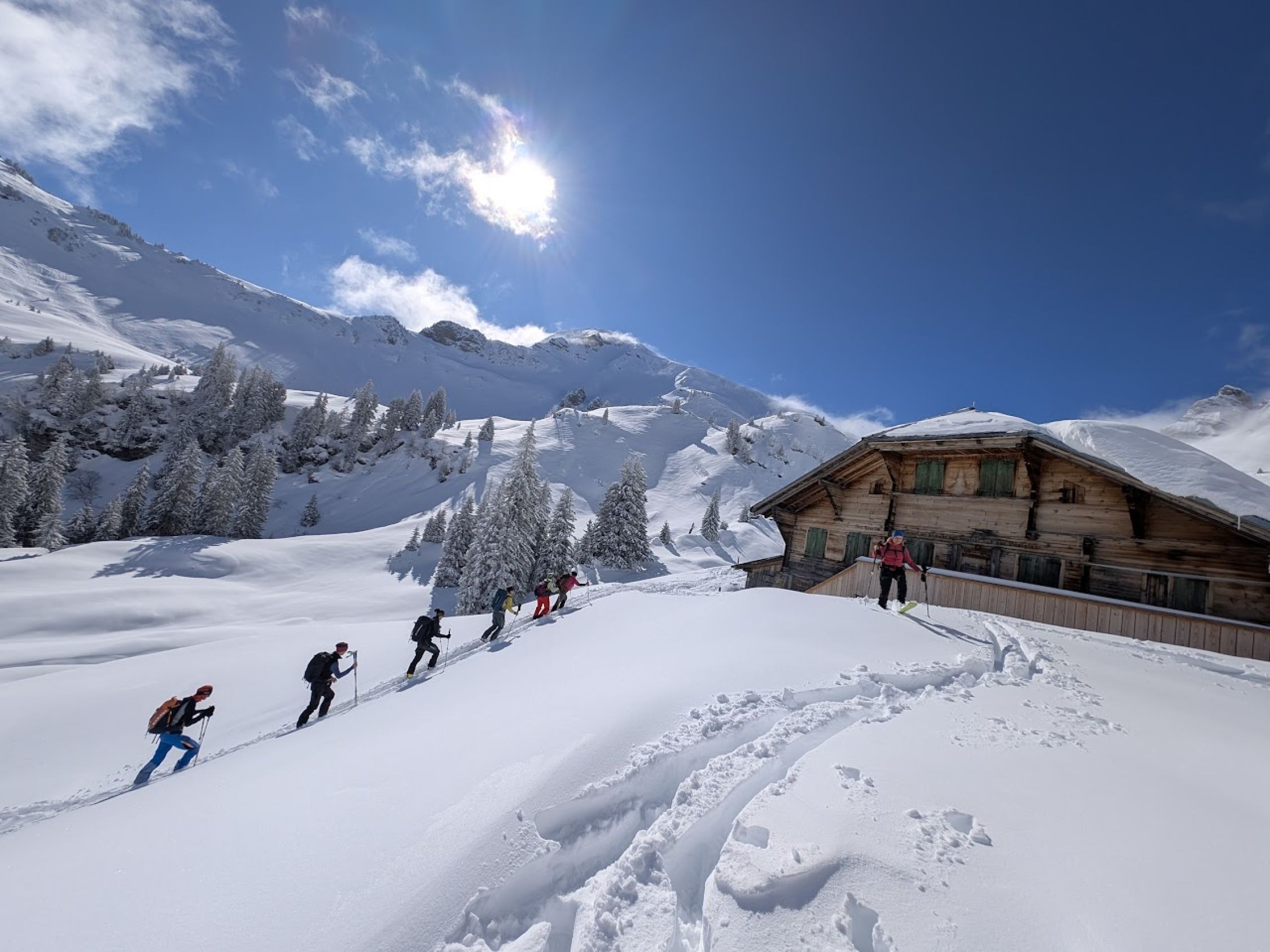 Wird durch den vielen Neuschnee und bei nicht so nebeligem Wetter wie gestern noch recht lange gut gehen, Ausreichend Schnee ab Grimmialp