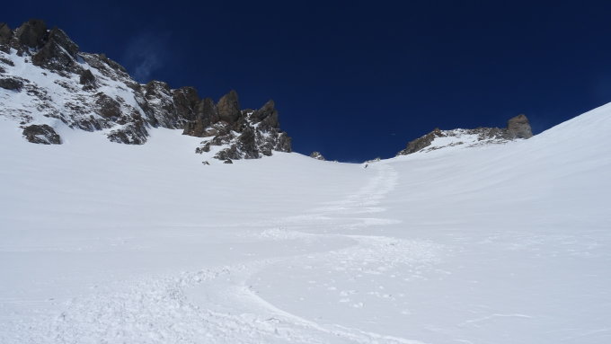 Der Wind hat heute wieder alles geleistet starker Westwind und Saukalt im ganzen Aufstieg,der frische Pulverschnee weggeblasen