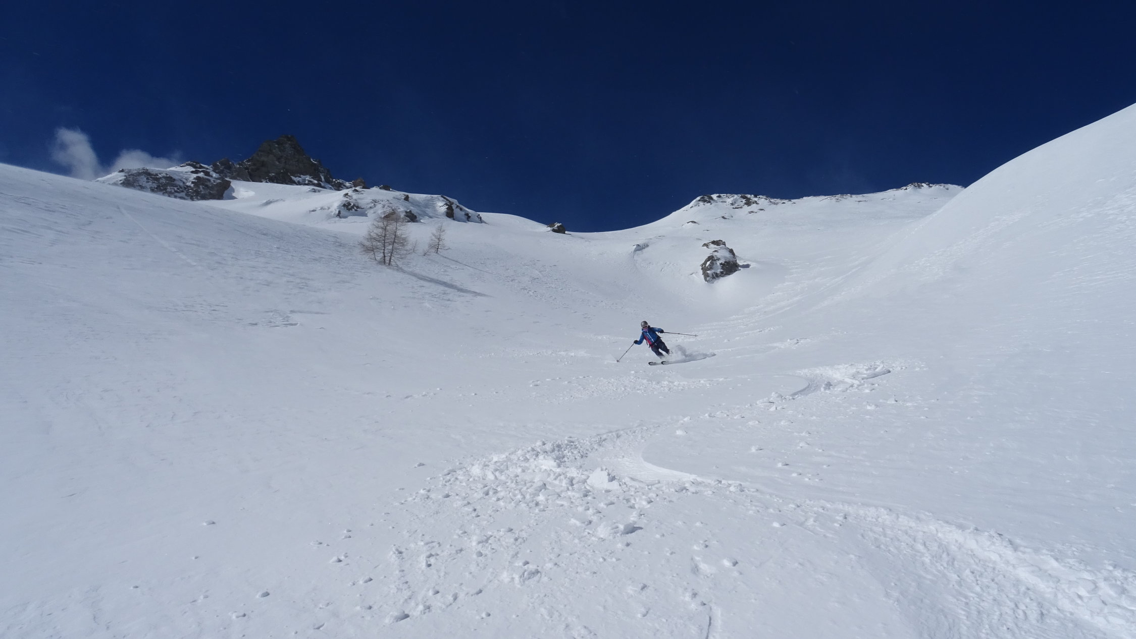 Wir entschieden uns für die Abfahrt Ritzitälli und siehe da lag der Pulverschnee und die Abfahrt wurde doch noch zum vergnügen und erst noch Firstline