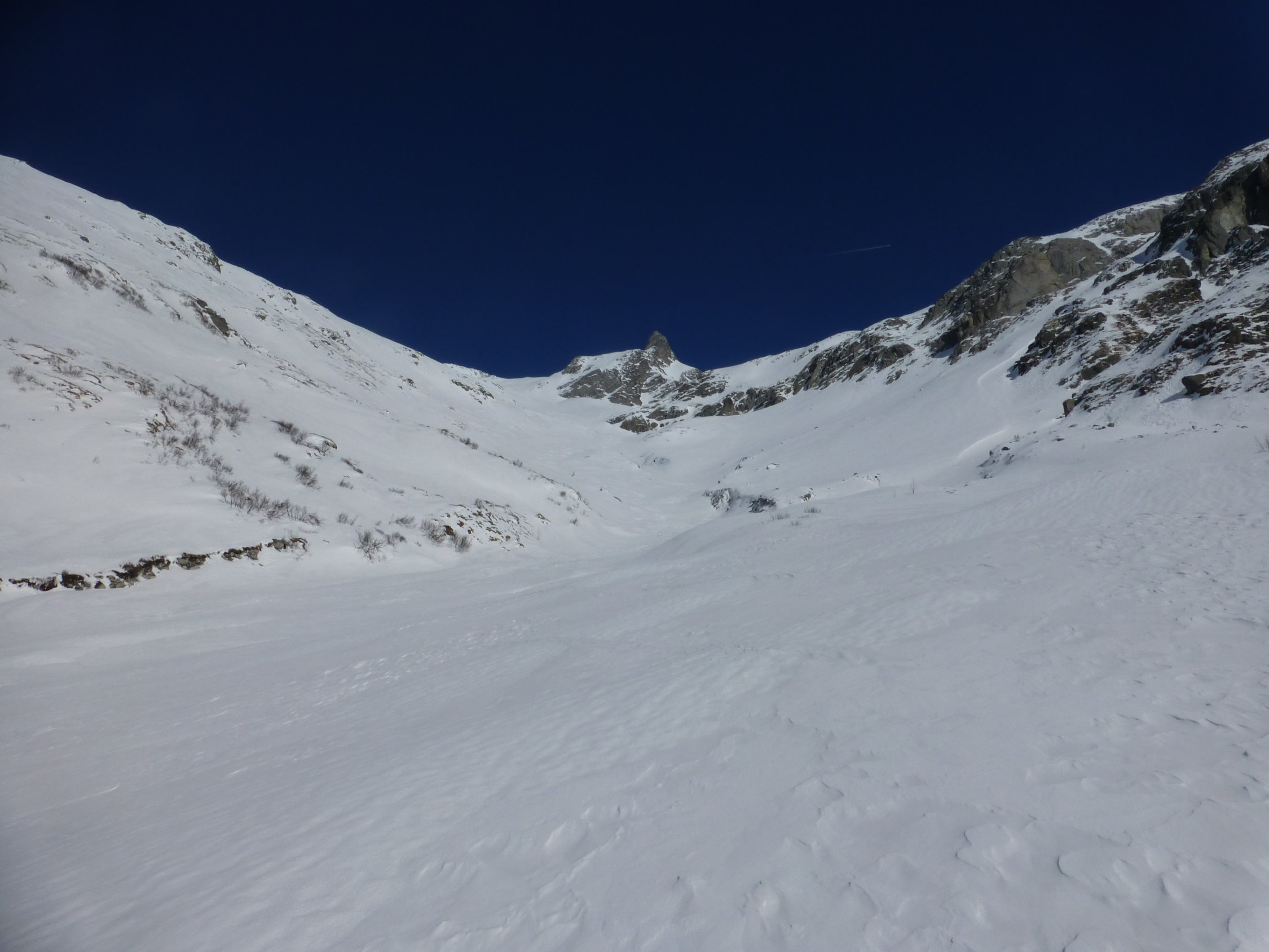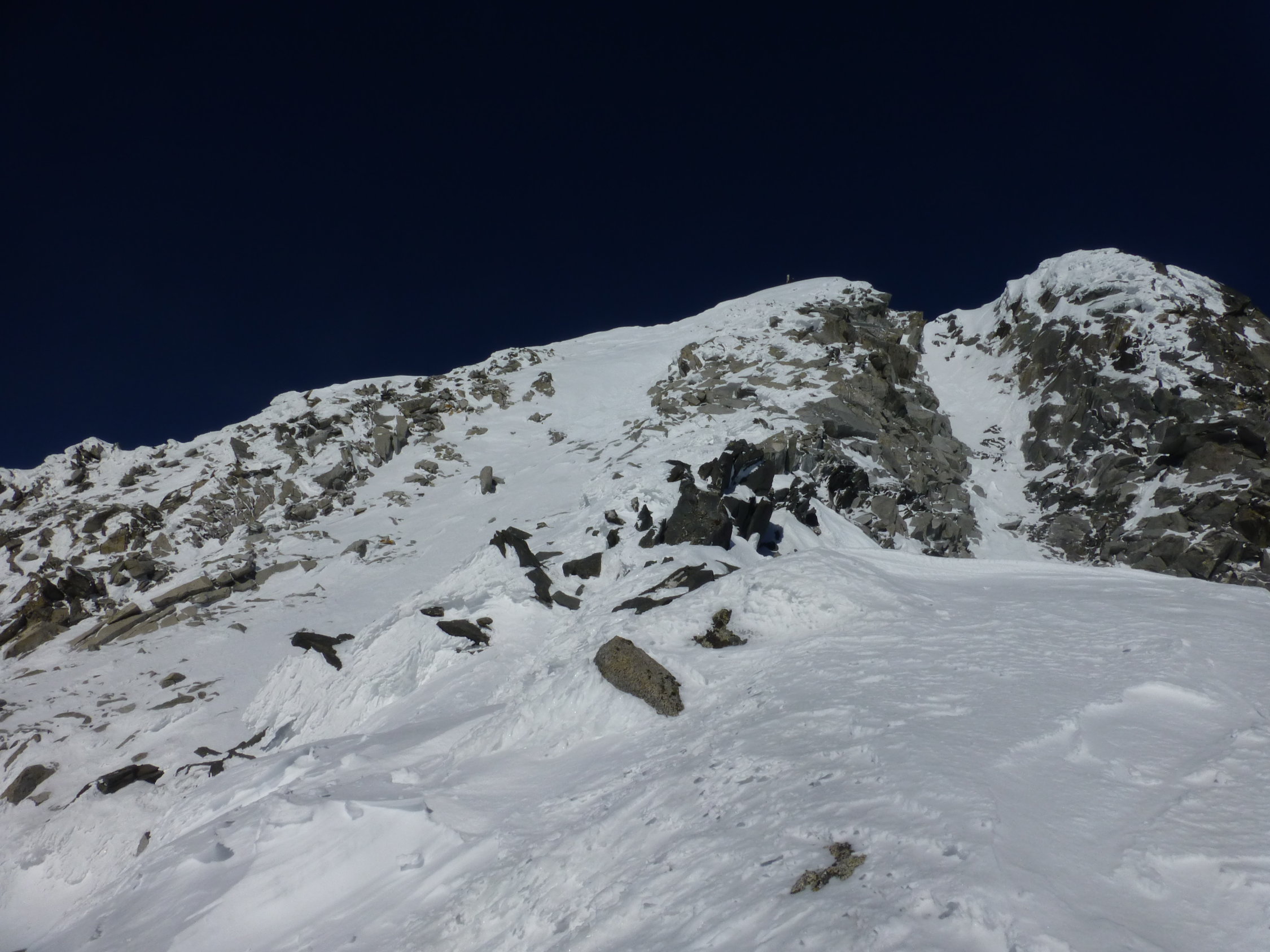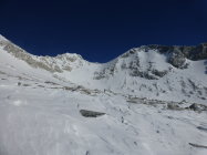 Am Morgen noch böiger NO-Wind, der im Laufe des Vormittags einschlief. Triebschneepulver bei der Abfahrt. Schartenhang zum Gipfelgrat bockhart. Grat selbst weist guten Trittschnee auf, aber Steigeisen speziell für Abstieg empfehlenswert. Strasse zum Stausee noch nicht geräumt, sodass vom Mauthäuschen wegmarschiert werden muss. Zusätzlich 1,8 km Strasse plus 200 hm.
