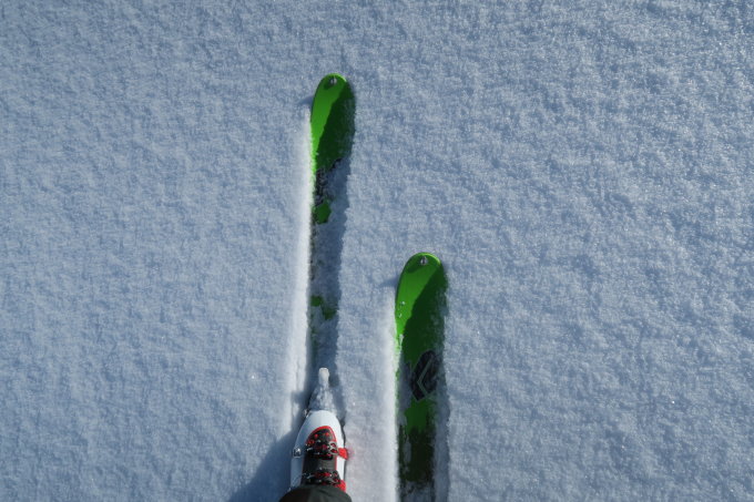 Die Nordhänge bei der Engstligenalp hatten fast ausnahmslos 10-20cm sehr feinen Pulver auf harter Unterlage. Zum Spuren z.T. recht rutschig in steileren Hängen. Die vorhandene Spur war meist gut gangbar, auch hier musste man hie und da etwas Kante geben. Weiter oben und vor allem ab Chindbettipass oft abgeblasen und z.T. - wer hätte es gedacht - recht rutschig. Die Harscheisen wären spätestens ab dem Chindbettipass vermutlich sinnvoll gewesen. Es gefiel ihnen aber im Rucksack besser :-). Der Gipfelaufstieg ab Skidepot war problemlos ohne Hilfsmittel. Die Abfahrt bis Chindbettipass war ganz passabel, obwohl viel gequert werden muss (Achtung auf Steine). Direkt abfahren zur Engstligenalp wäre sicher toll gewesen, aber ich bin weiter gegangen zum Rote Totz (separater Eintrag kommt noch).