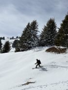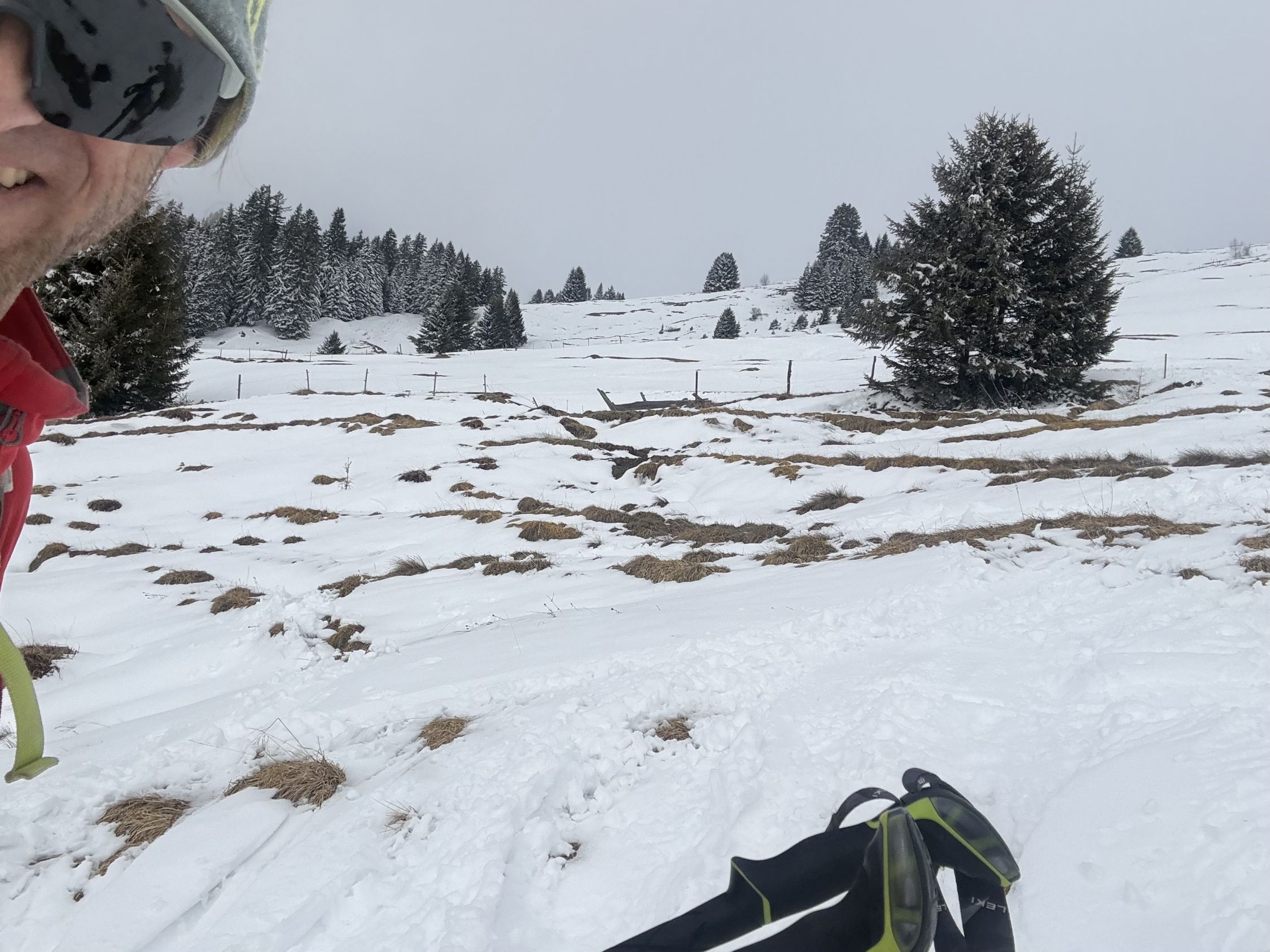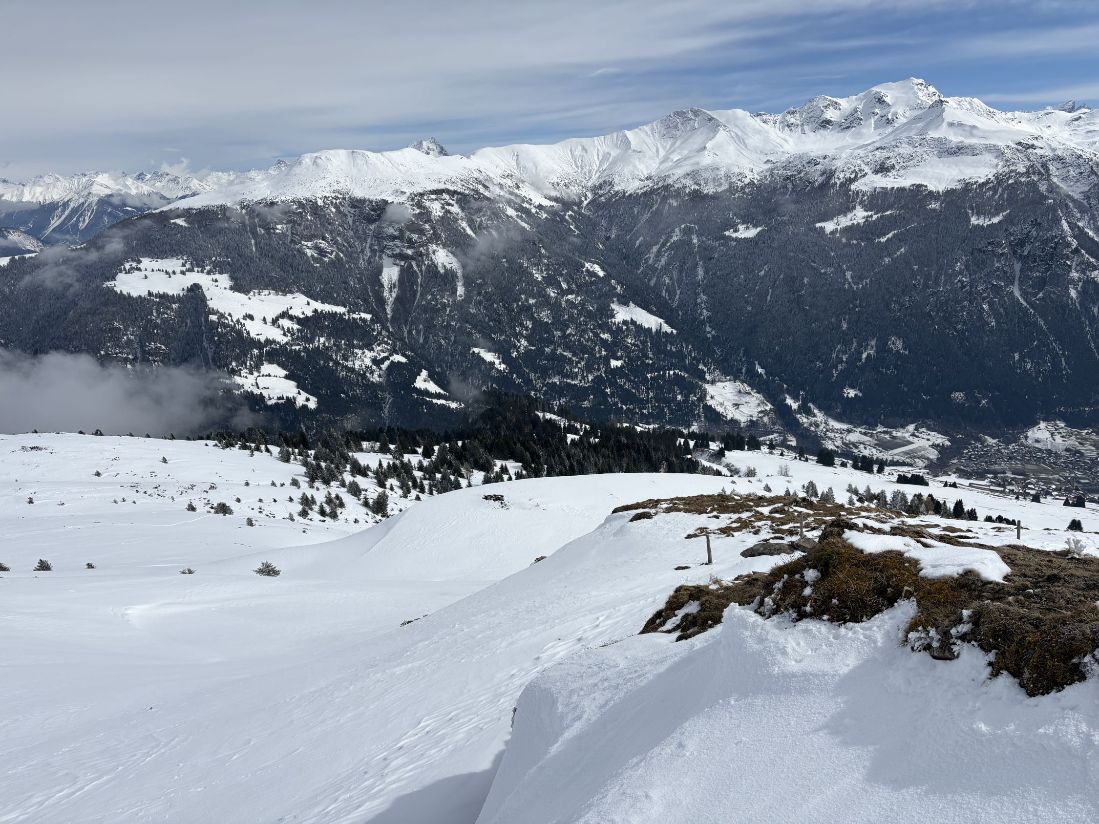Das „gut“ bezieht sich auf den noch gut vorhandenen Schnee oberhalb der Baumgrenze. Bei Lohn bis 1700m kaum mehr etwas vorhanden. Wir schafften es bei der Abfahrt gerade noch so bis ins Dorf. Der Schnee ist feucht bis nass, je nach Hangausrichtung. Hauptsächlich wegen der allgemeinen Wärme.