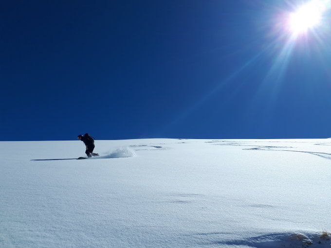 Schnee war vom Gipfel bis ca 200hm unter ser Bahn recht pulvrig. Oben aber etwas verblasen und einige Steine. Die letzten paar Höhenmeter nach Urnerboden war der Schnee schon etwas schwerer