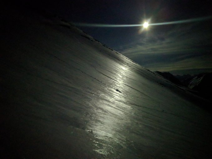 Geplant war eine Vollmondtour, da der Mond jedoch eher tief und im Osten stand, wurde mehr eine Nachttour mit Stirnlampe daraus. Trotzdem eine tolle Stimmung.