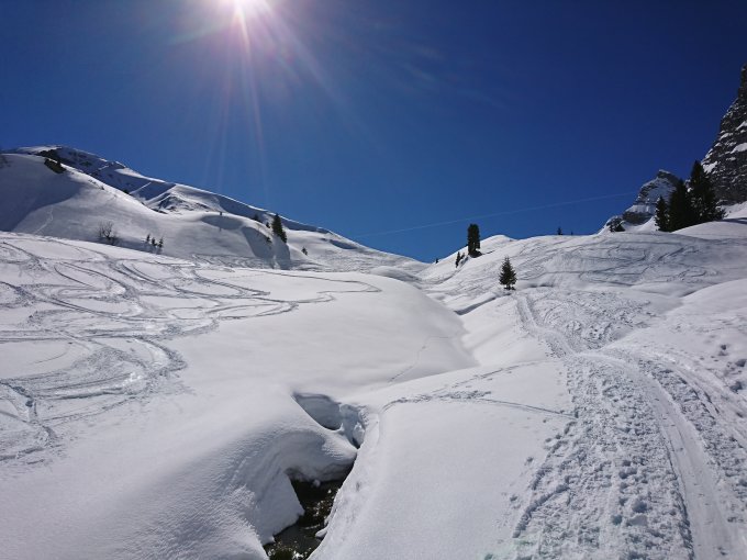 Sind um 13 Uhr ab Gipfel abgefahren. Top Sulz an Sonnenseite einige cm Pulver Nordseitig.