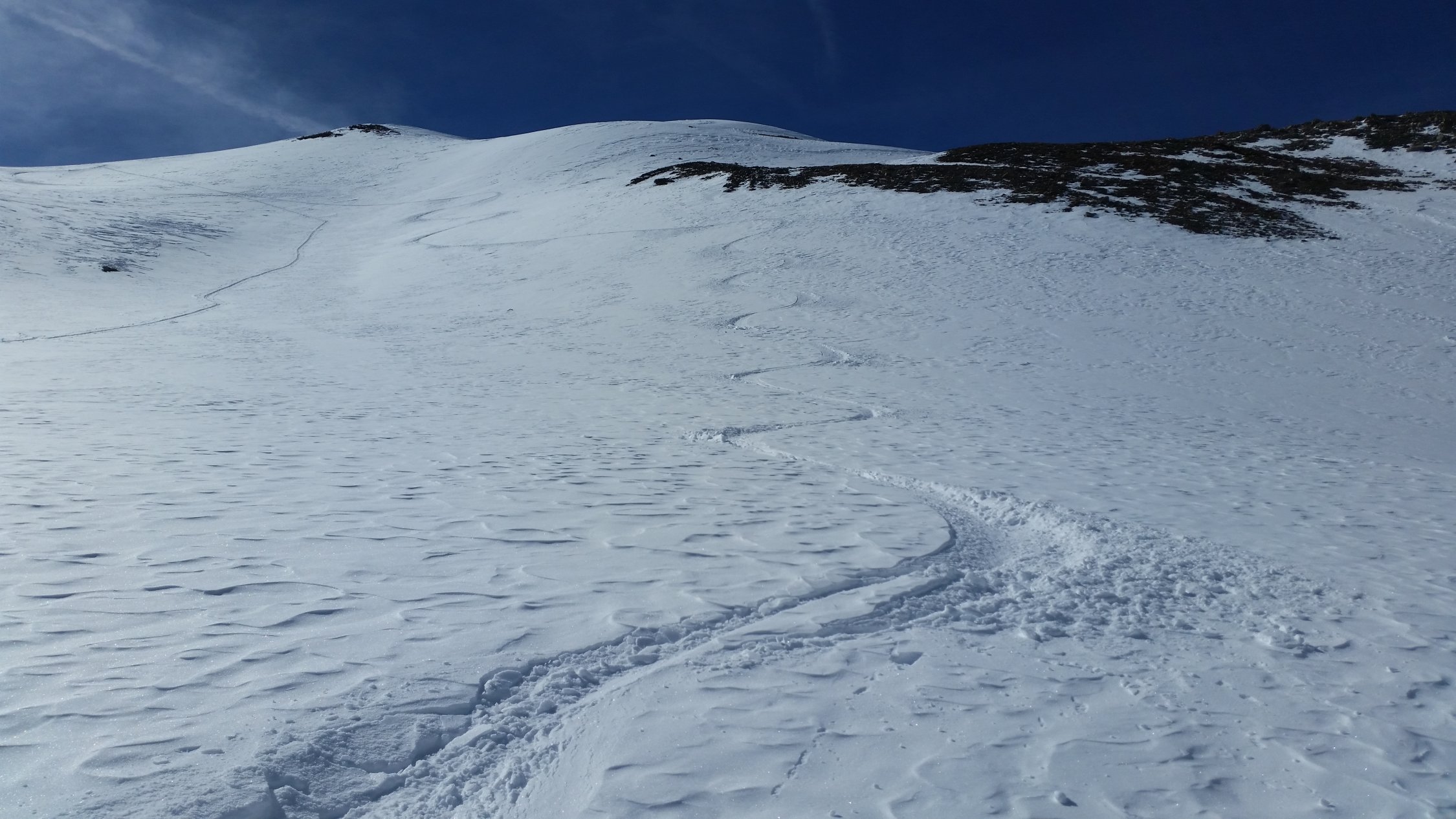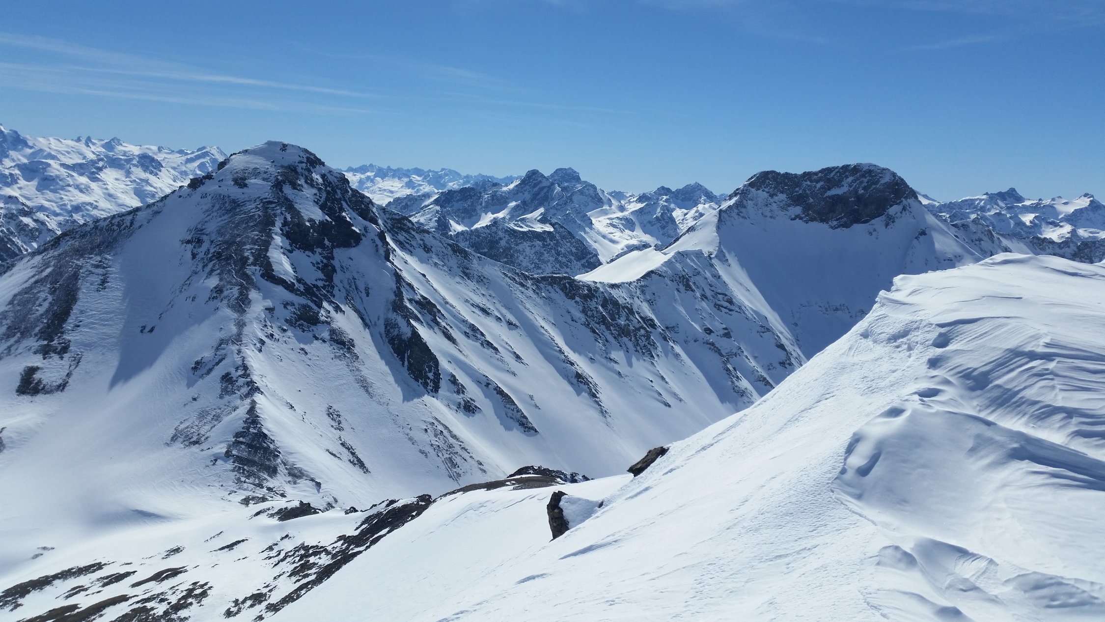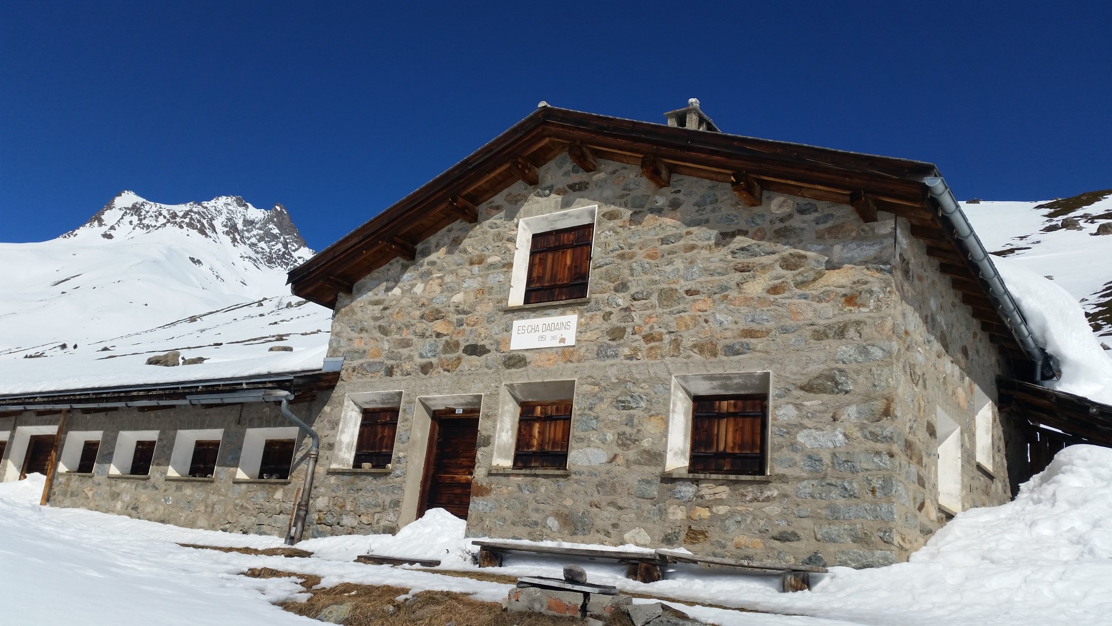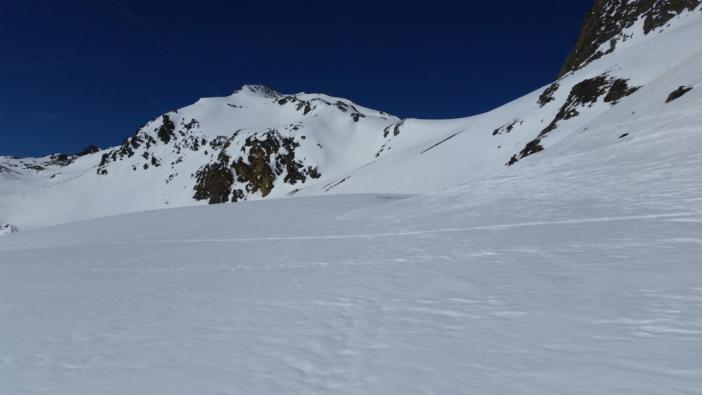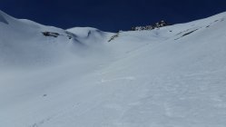 Heute alleine unterwegs. Habe von P2502 bis zum Gipfel gespurt. Das Val d´Es-cha zieht sich noch. Es hatte von der Chamonna d´Es-cha eine Spur über die Fuorcla Pischa und eine über P3081 hinab nach Chants. Der Piz Blaisun wäre mit Steigeisen auch gut machbar gewesen. Keine direkte Spur von Piz Pischa zur Fuorcla Pischa gesehen.