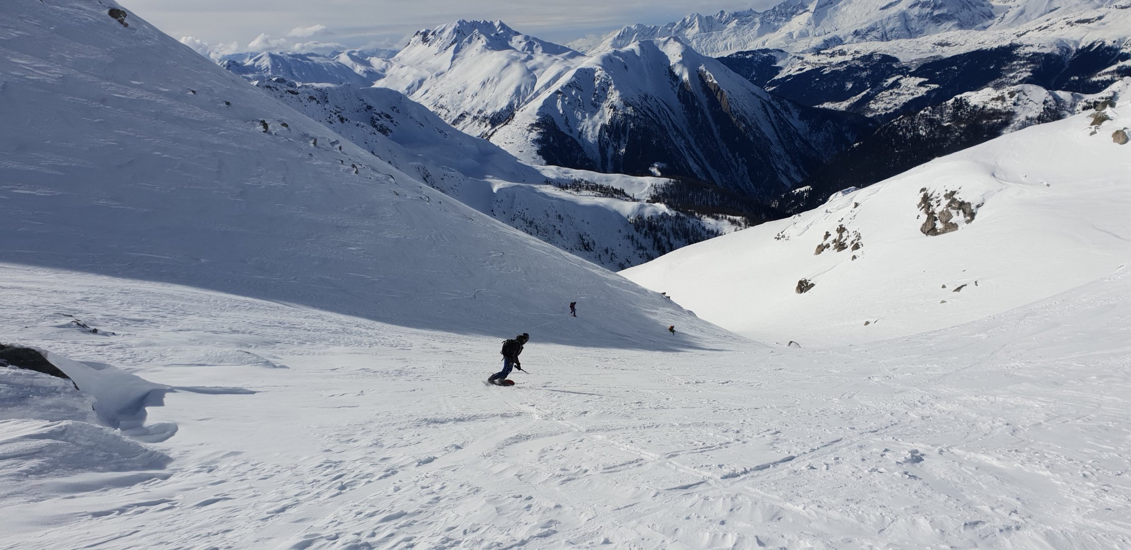 Im Binntal hat der Wind seine Spuren hinterlassen. oberhalb der Baumgrenze ist der Pulver verblasen. genug Schnee ab Fäld.