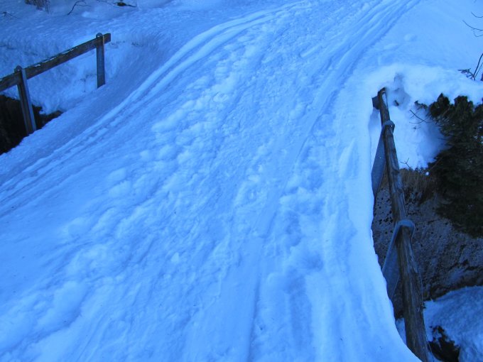 In der Südflanke vom Stockberg tragender Harschdeckel, beim Abstieg um ca. halb 12 Uhr aufgefirnt.