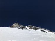 Der Wind von gestern hat dem Schnee ein bisschen zugesetzt. Auch die Spur im Gipfelcouloir musste neu getreten werden. Man kann die Ski gleich beim Parkplatz anschnallen und muss nur mal einige Meter die Ski tragen.