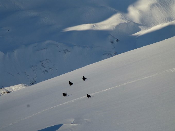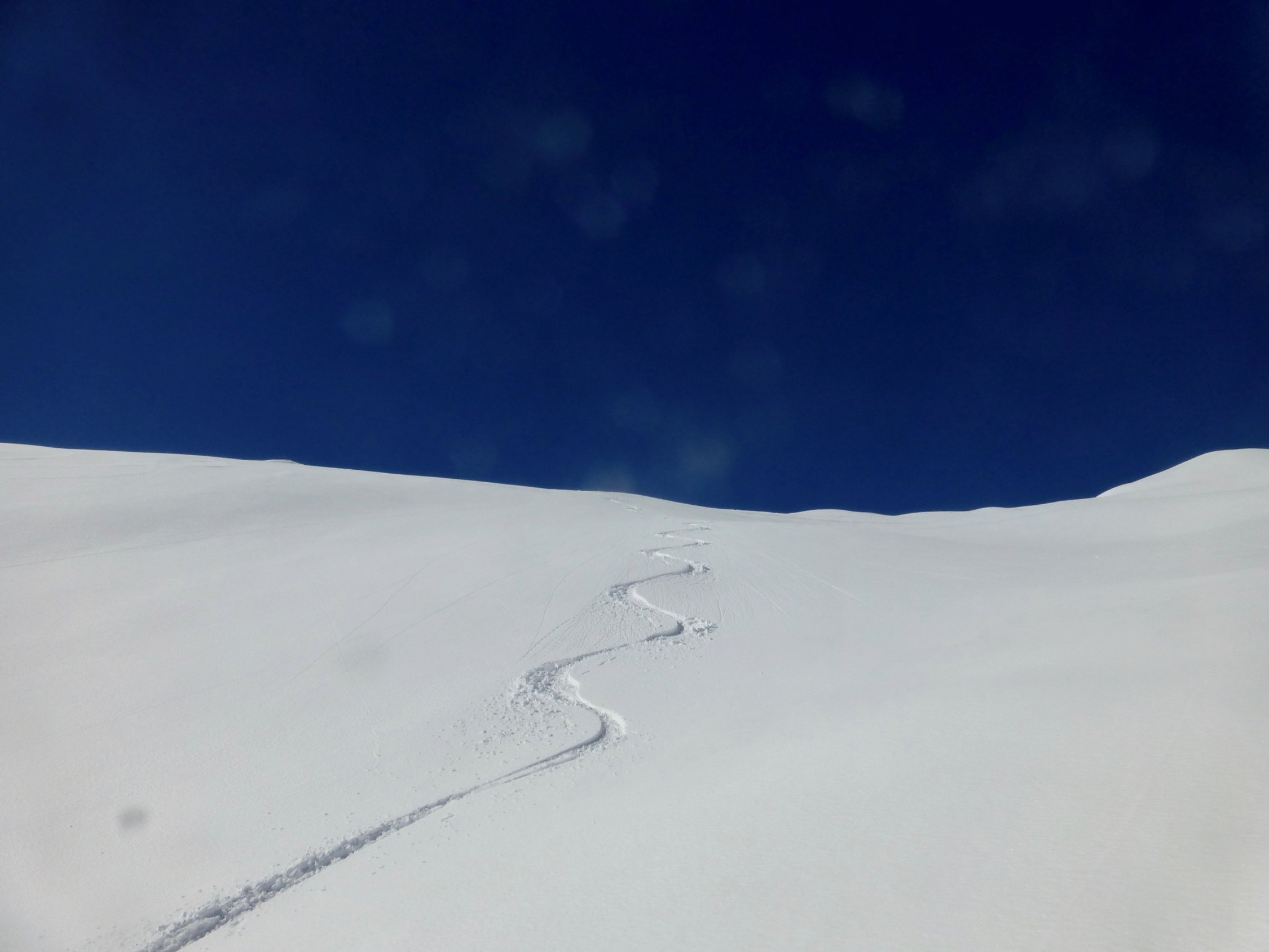 An Osthängen im Gipfelbereich ca. 10cm kompakter Pulverschnee auf harter Unterlage. Gegen Sogn Giusep wird die Schneedecke allmählich dünner, aber bis gegen Mittag darf seidenfeiner Sulzschnee genossen werden!