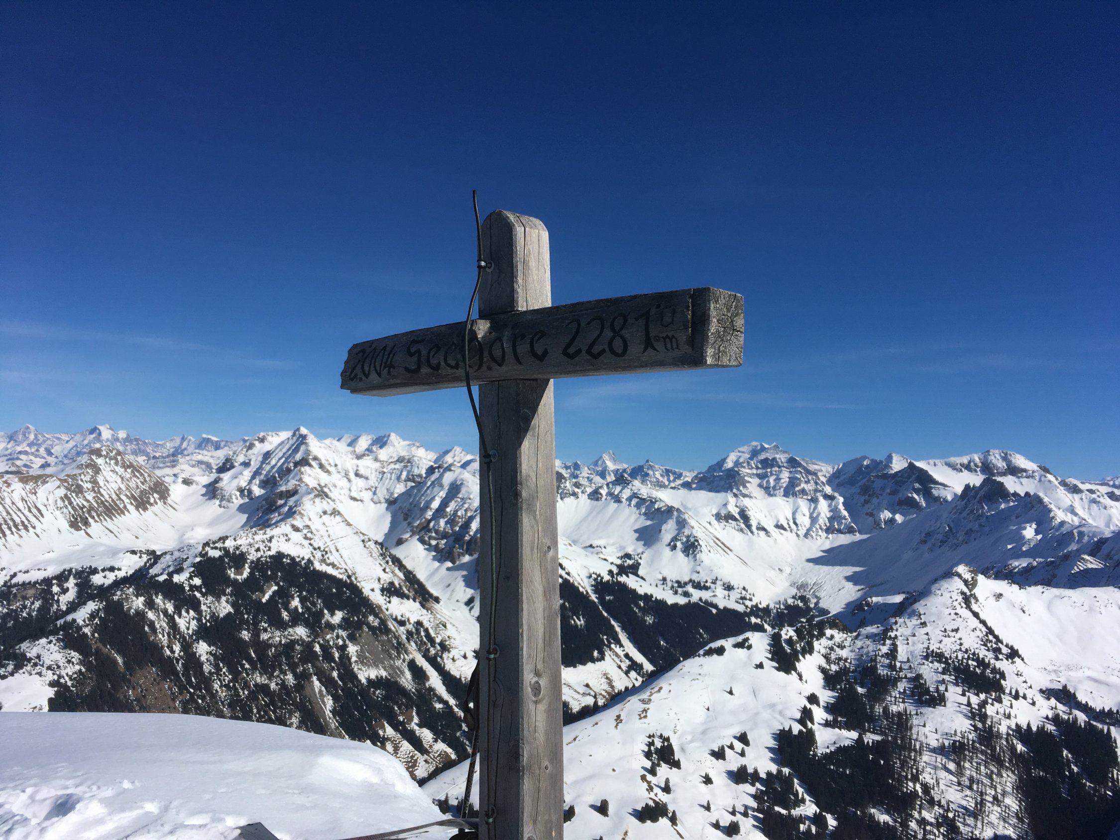 Auf dem Seehorn Gipfel liegt meine hölzernen Flöte