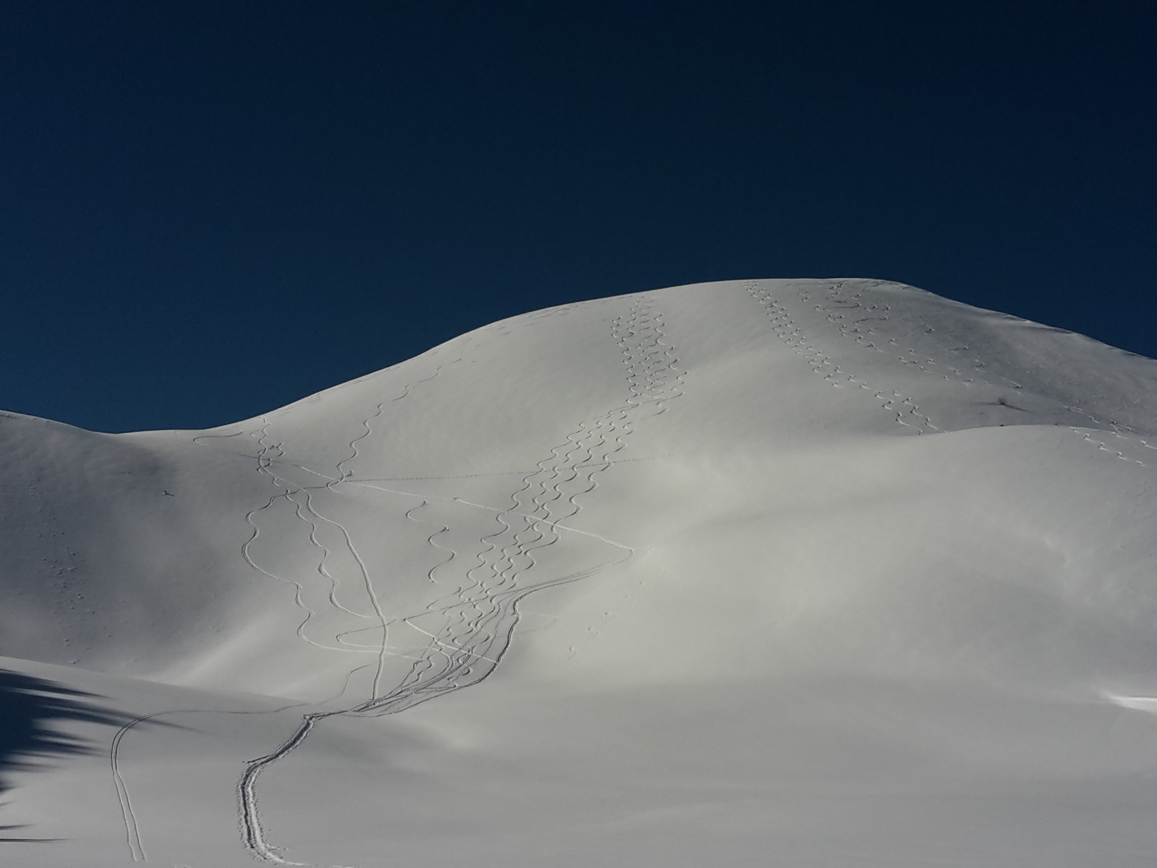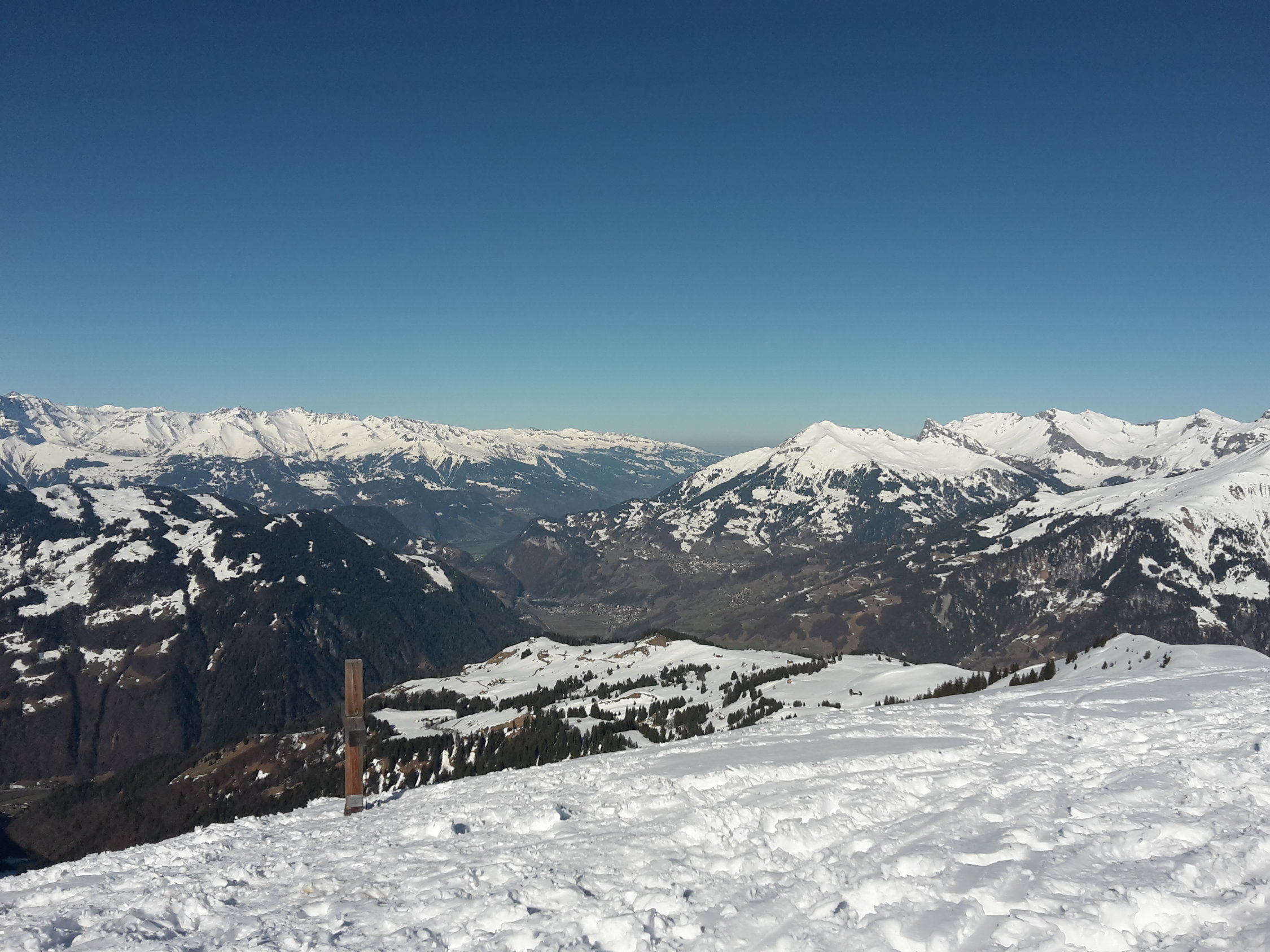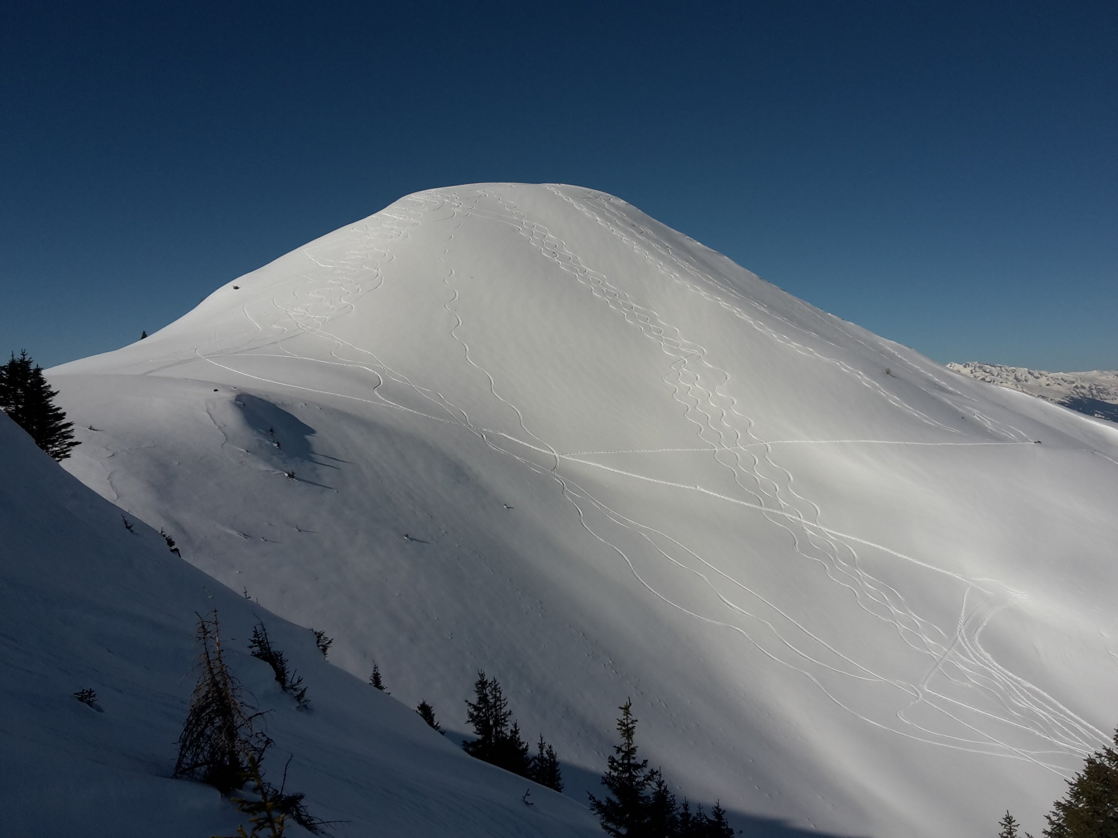 Start um 7:45 in St.Antönien Platz, Ski etwa 50hm tragen auf der Strasse nach Schwendi/Michelshof, ab da teilweise etwas glasige Spur, wegen der Wildruhezone brav dem Winterwanderweg entlang durch den Wald. Ab Pkt. 1751 gehts zur Sache, Spur arg ramponiert durch Schneeschuhwanderer, der Krete nach über Chli Chrüz zum Gipfel, es gibt auch eine Spur direkt zur Einsattelung zwischen Chli Chrüz und Chrüz, die Aussicht ist aber nicht so gut, tolles Gipfelpanorama. Abfahrt um 9:30, guter Pulver im steilen Gipfelhang, ab Valpun etwas Deckel, zurück auf dem Winterwanderweg war besser als befürchtet, man muss nur zu Beginn einmal etwas "tännlen", ab Skilift guter Sulz bis ins Dorf. Gerade rechtzeitig fürs 10:05 Poschti :-)
