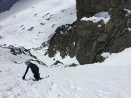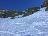 Start in Juf, Aufstieg über zum Teil schon recht apere Hänge. Ab ca. 2400. dann durchgehende Schneedecke. Der Übergang durch das Couloir zu Punkt 3140 ist eingespurt. Es hat guten Trittschnee, Steigeisen derzeit nicht erforderlich. Aufstieg durch das Südcouloir zum Gipfel ebenfalls gut eingespurt (heute war Platta-Tag). Für die Abfahrt Richtung Marmorea Stausee in den sonnengeschützten Seiten noch Pulversee, sonnenexponiert waren schon Firnschwünge möglich.
