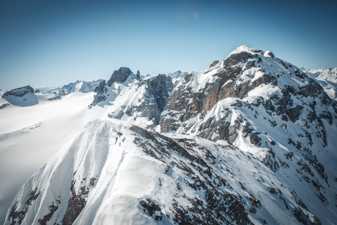 Besser wird’s nicht mehr! Pulver in der Wand dass es nur noch staubt. Grat gut gangbar. Unten raus wird der Schnee halb bald knapp.