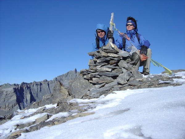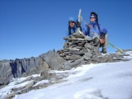 Im Gipfelbereich starker Südwestwind, Schnee und Eis. Abstieg über Südgrad des Crap Mats. Diese Variante erfordert Trittsicherheit.