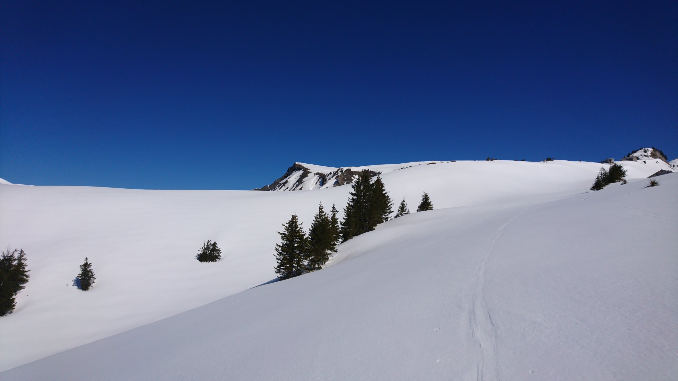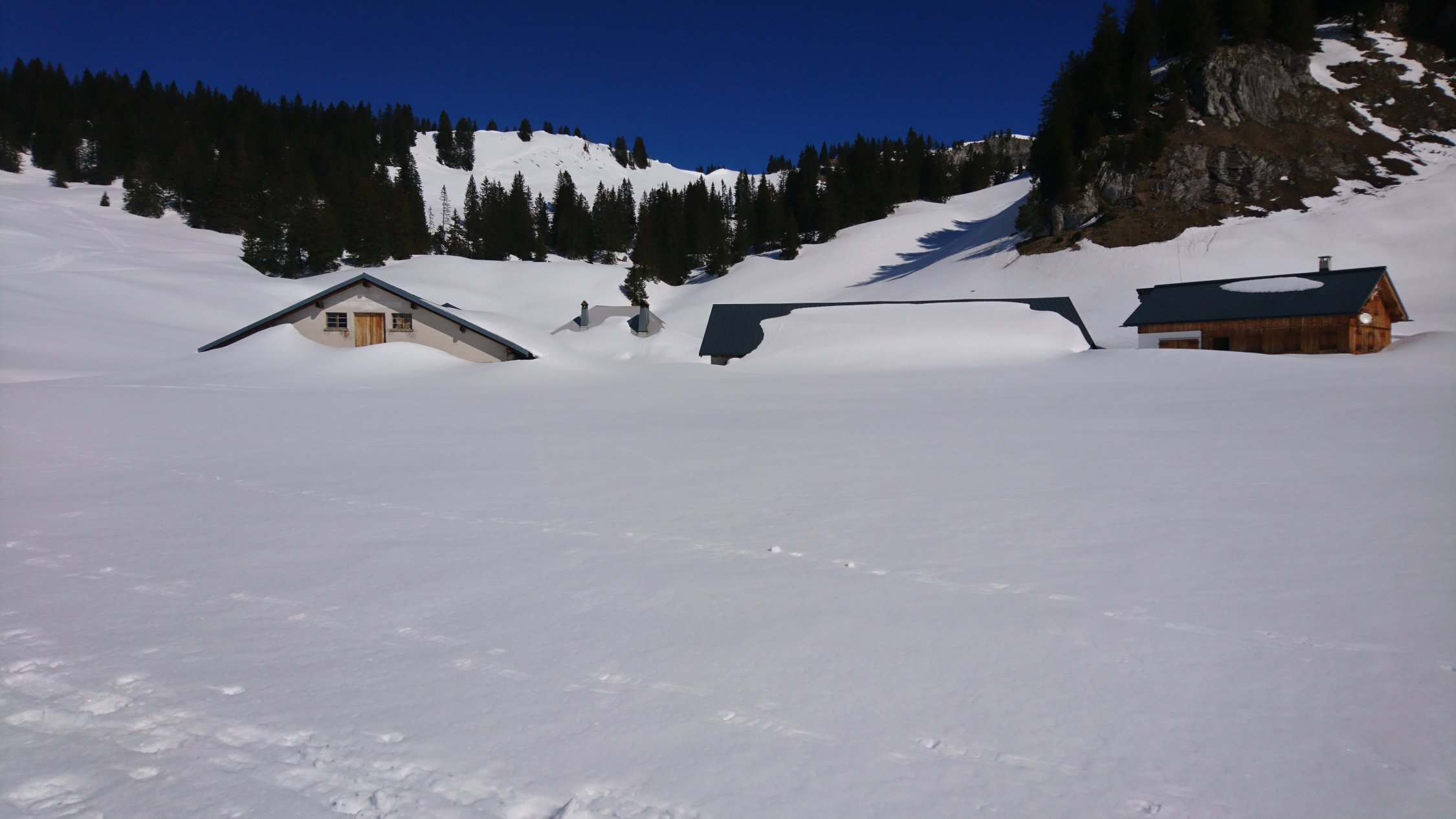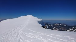 Super Wetter und super Sicht. Noch genügend Schnee. Unten sinnvoll über Piste (Pistenrand).