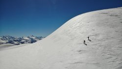 Wir bestiegen all drei Stück, Grossstrubel, Mittelgipfel und Wildstrubel. Für die Abfahrt liefen wir zusätzlich Richtung Schneehore und fuhren bei 3123 ab.