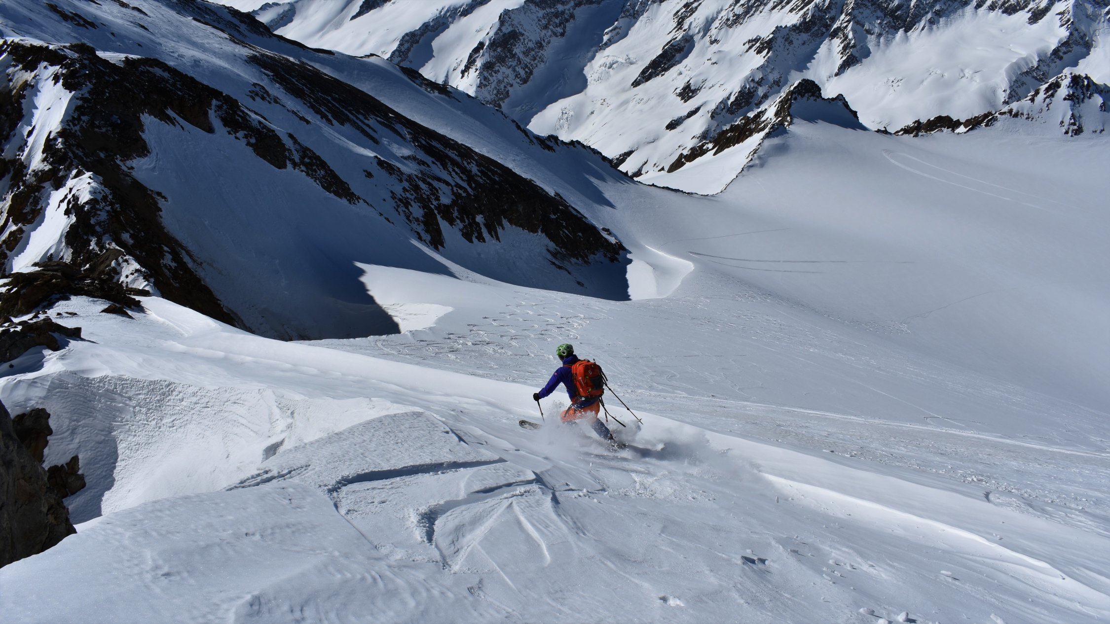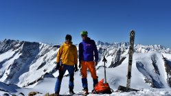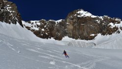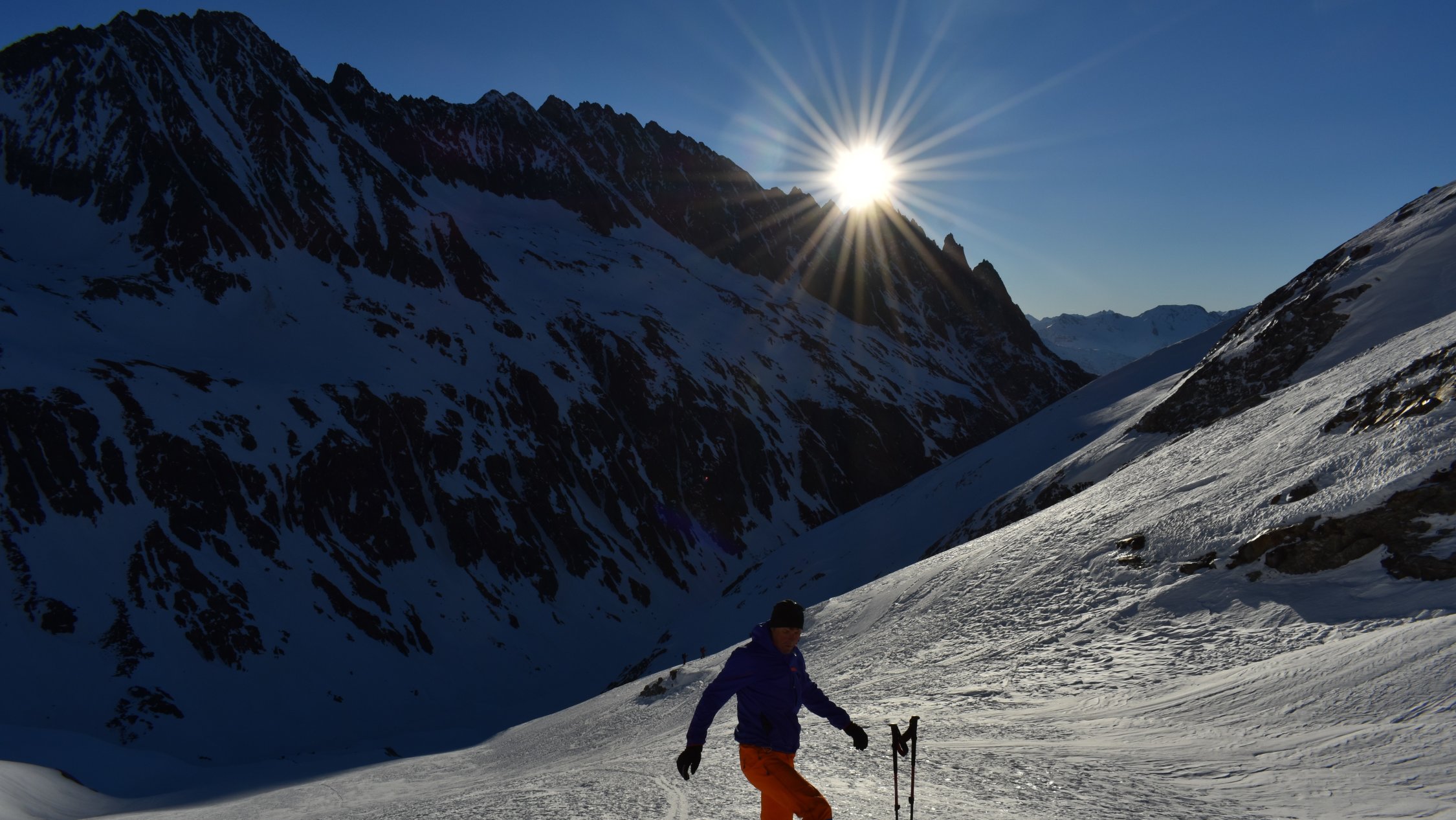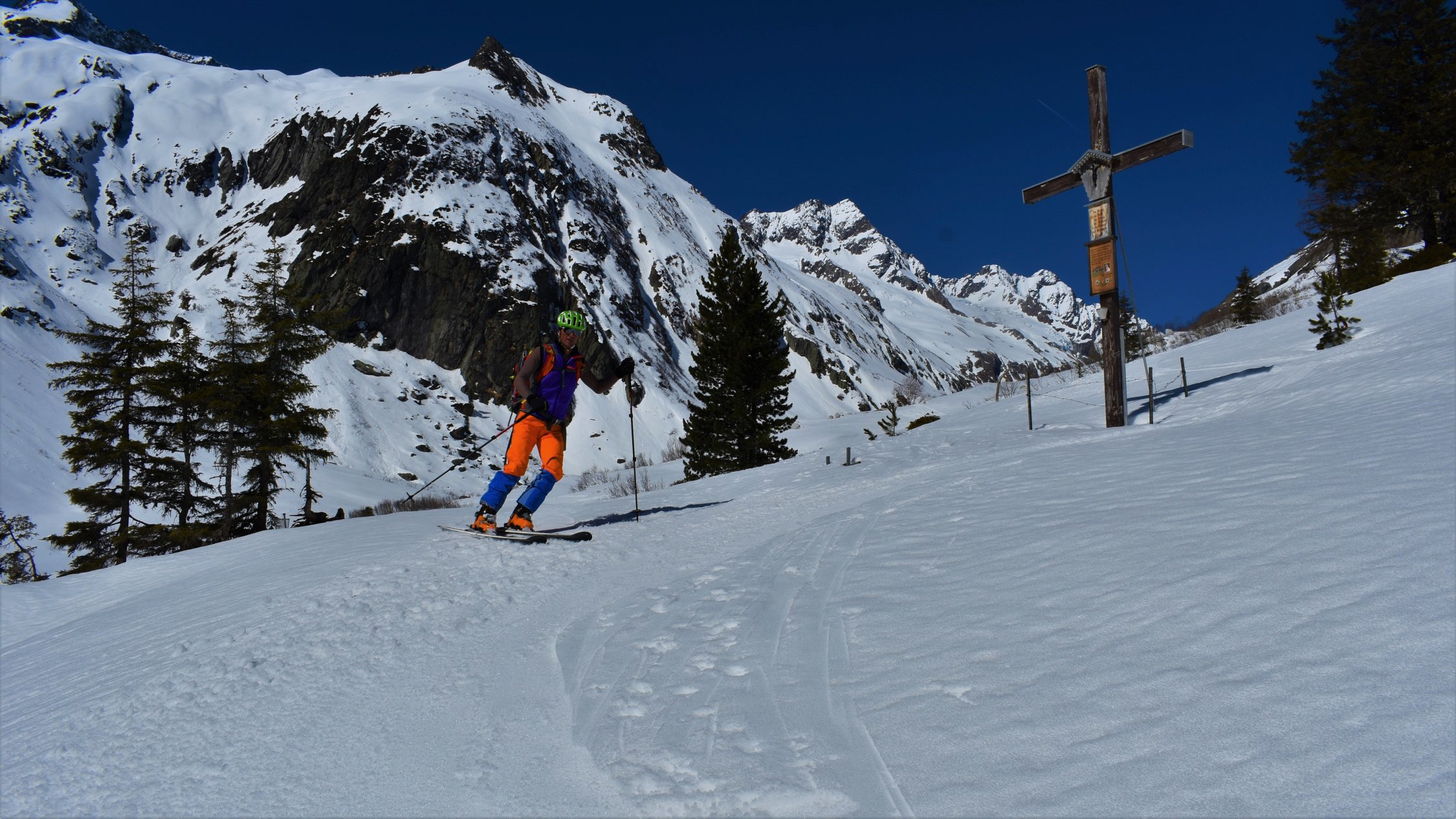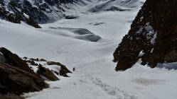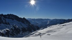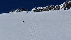 Start hinter Göschenen um 4.30 Uhr. Auf Hartschnee bis zum Voralp Rank P.1404 dann auf Sulzschnee durch den steilen Wald und weiter auf harter Spur durch das Voralptal bis zur Voralphütte. Nun Westlich über den Flachensteinfirn zum P. 3287 (ab 2600 meist Pulverschnee) bis zum Gipfel kaum noch Pulverschnee.