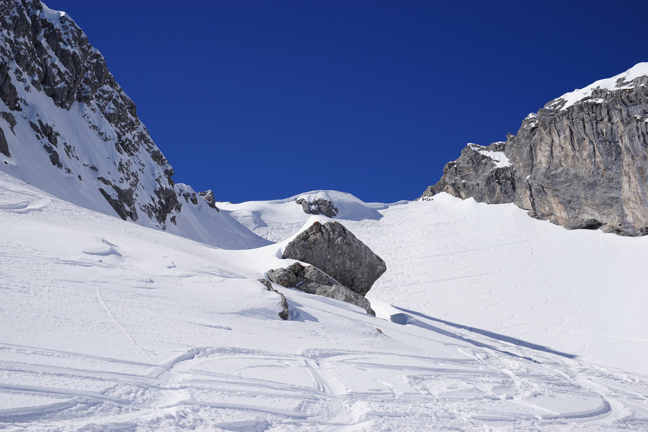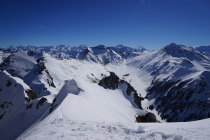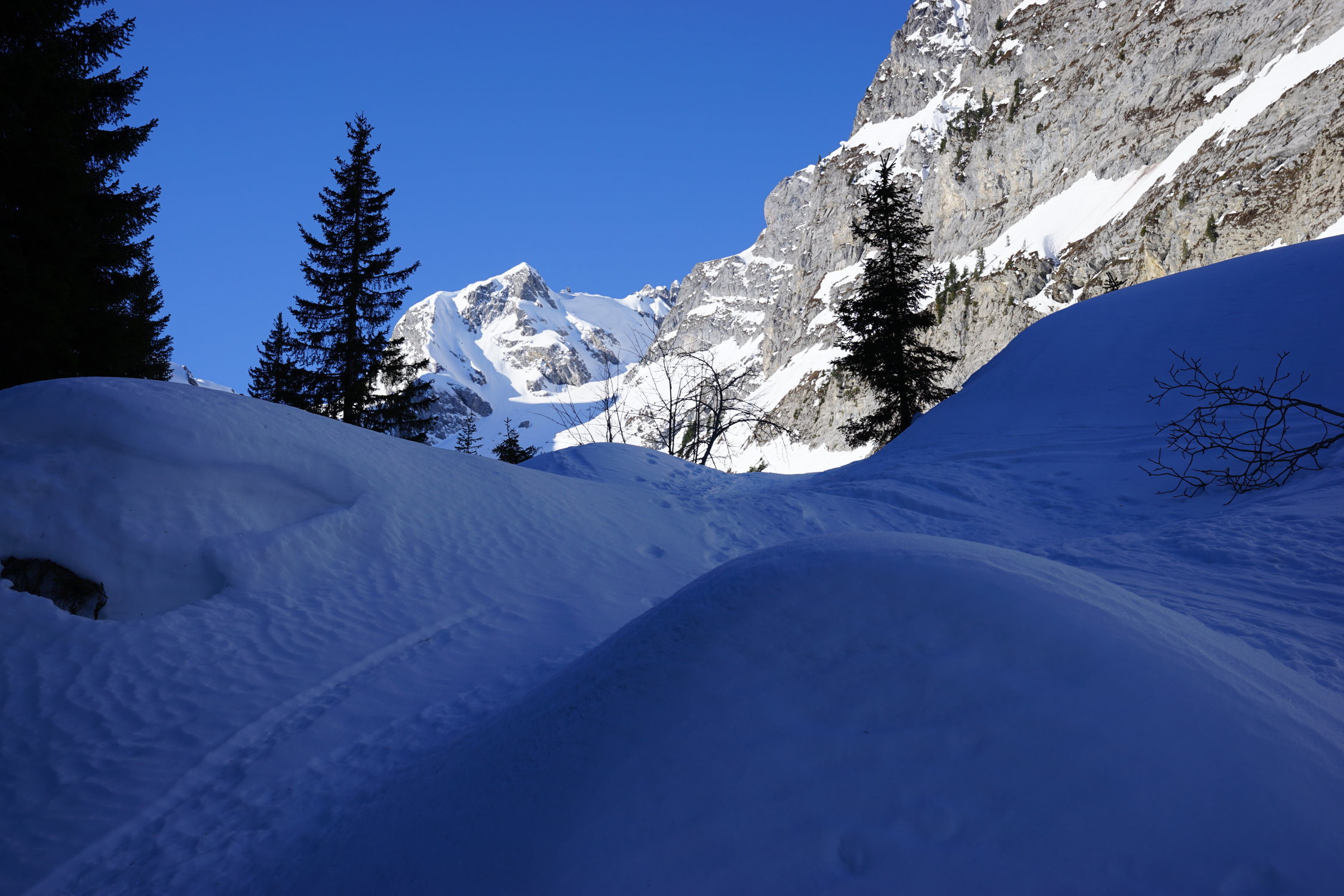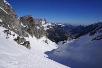 Morgen um 07:15 +1°C beim Parkplatz. Die Tour ist fast durchgehend mit Schii begeh- und befahrbar. Aufstieg auf guter Spur heute problemlos ohne Harsteisen machbar. Gipfelsteilhang hat dieses Jahr wohl weniger Triebschnee abgekriegt. Er war auf alle Fälle weniger steil als auch schon. Aufstieg über die zwei Steilhänge schon sehr warm, dafür auf dem Gipfelgrat kalter Wind aus Südwestlicher Richtung. Abfahrt: Gipfelhang im Schatten gesetzter Pulver an der Sonne Sulz. Nächster Steilhang dasselbe. Unter dem Pulver von letzter Woche hat es eine Eislamelle. Es hat gehörig gekratzt beim Kurven fahren. Ab Alpstrasse Schnee schon faul und bremsend. Der alte Lawinenkegel hat die Strasse gleich doppelt verschüttet. Etwas Hindernislauf nötig.