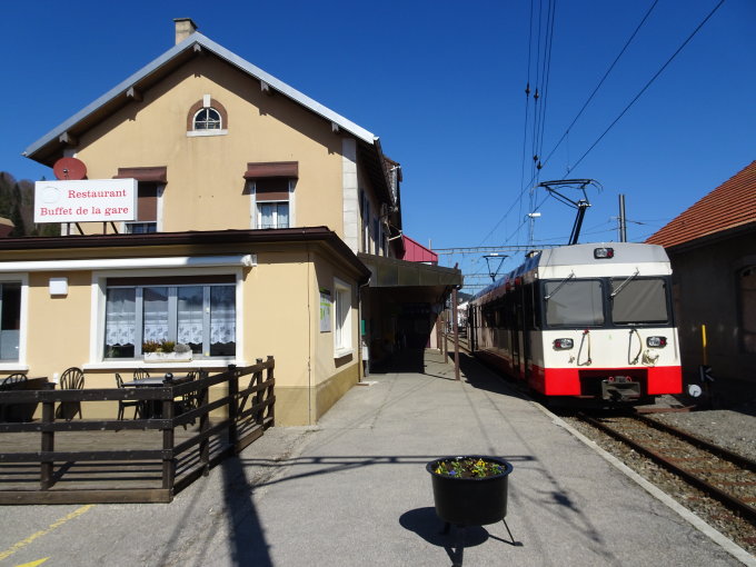 Wir haben den Zug in Chambrelien genommen - wohl einer der letzten Bahnhöfe auf einer Strecke (und nicht als Sackbahnhof gilt), dessen Züge vorwärts reinfahren und "rückwärts" auf die Weiterfahrt gehen.
