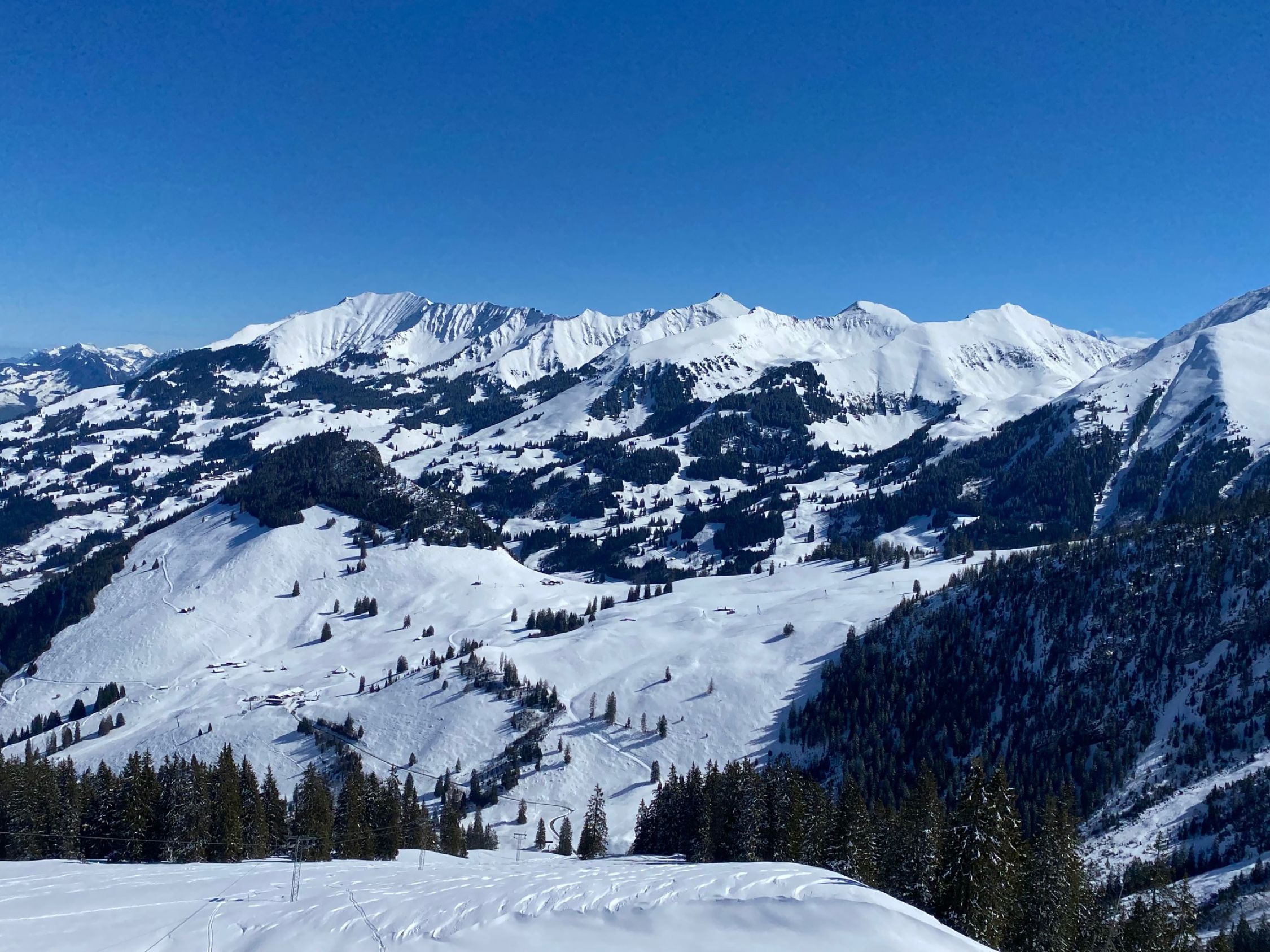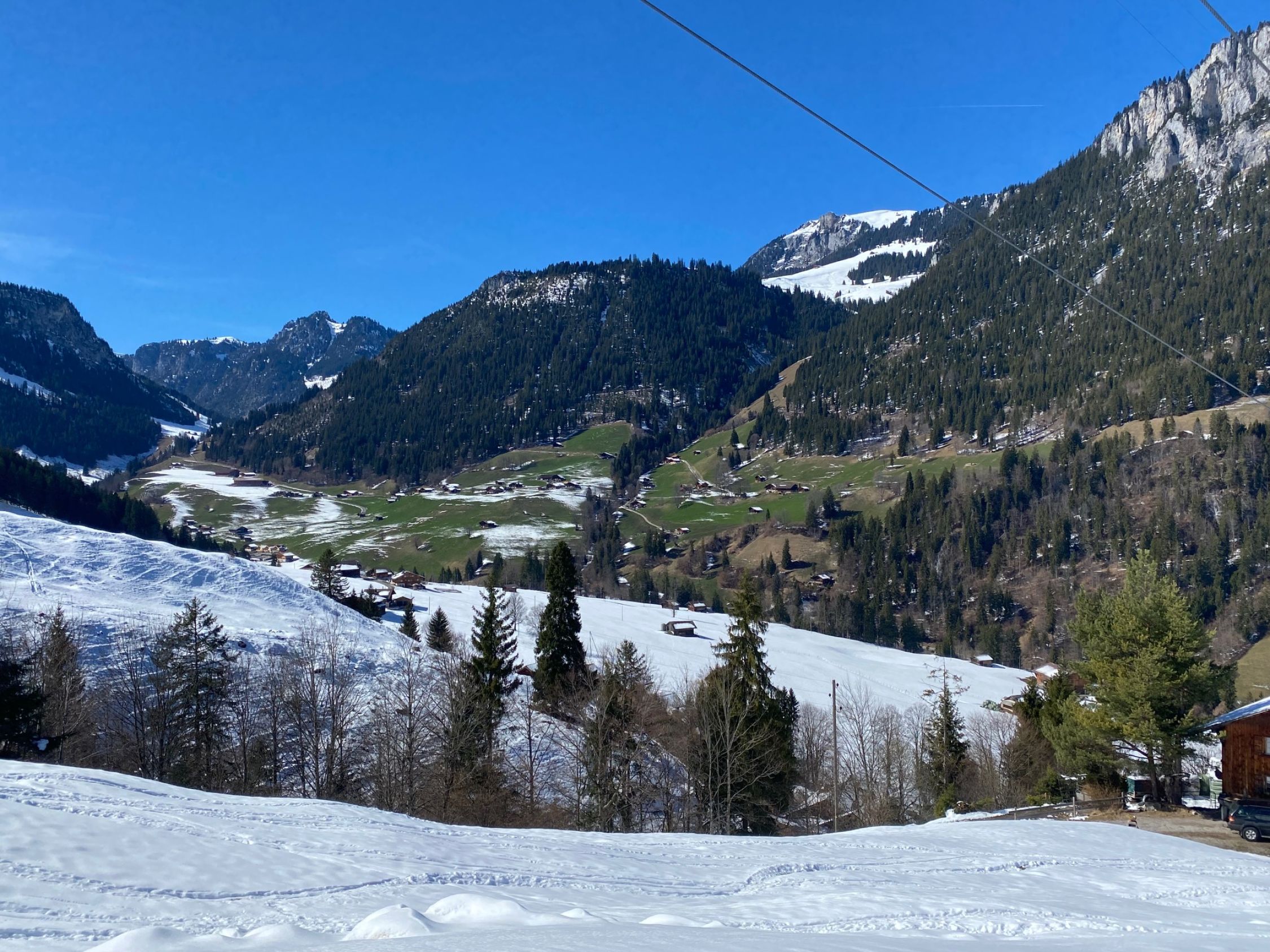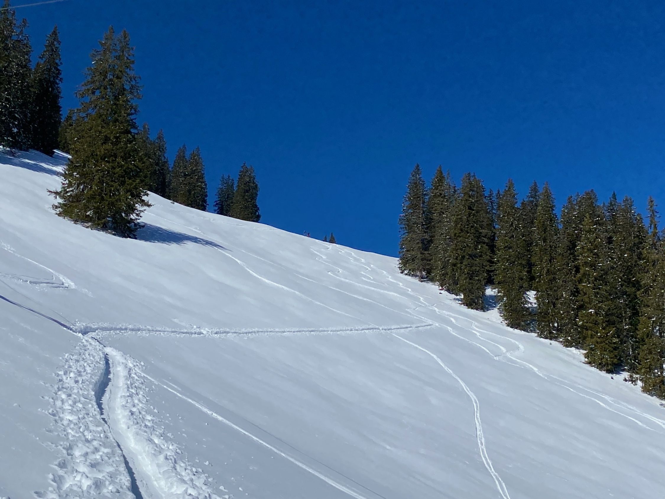 Der untere Teil bis ca. 1300m war auch bei Start um 9:40 noch recht hart. Ab dort und vor allem im Homad-Osthang schon recht weich und schwerer Schnee. Homad bei Abfahrt gegen 12 die oberen 100m relativ Pulver, danach wurde es immer schwerer. Bin dann vo der Underi Heitere noch die ca. 300hm zur Bergstation des Tubefärrich. Dort deutlich bessere Schneeverhältnisse; zwar bei Abfahrt um 13:15 kein Champagner-Powder aber bis Nüegg super zum Fahren. Die Abfahrt ab Nüegg dann eher mühsam, da recht zerfahren; soweit möglich am besten neben der Restpiste; unten wird es dort allerdings zu wenig
