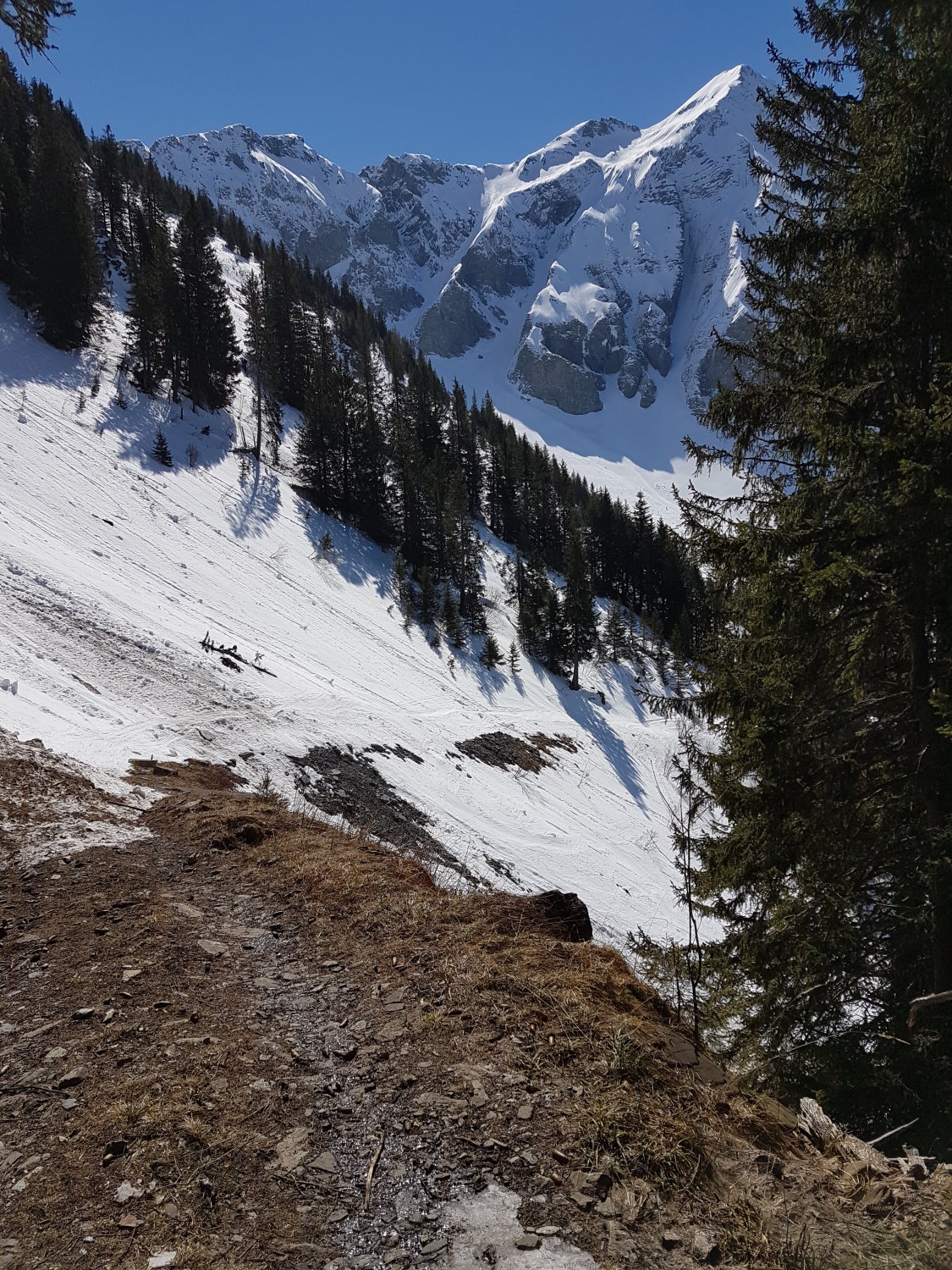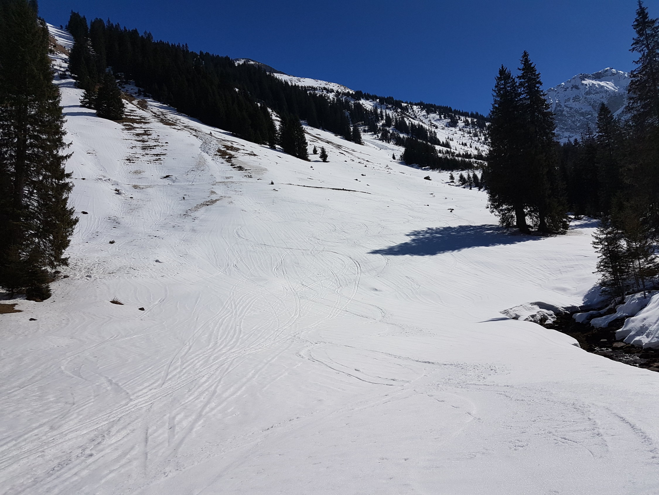 Die Lawine im Feissenboden wird die Zufhart zum hinteren Chirel bis in den Frühsommer behindern. Die dicken Holzstämme und die von grossen Steinen durchsetzte Erde können wohl nicht einfach rasch weggebaggert werden.