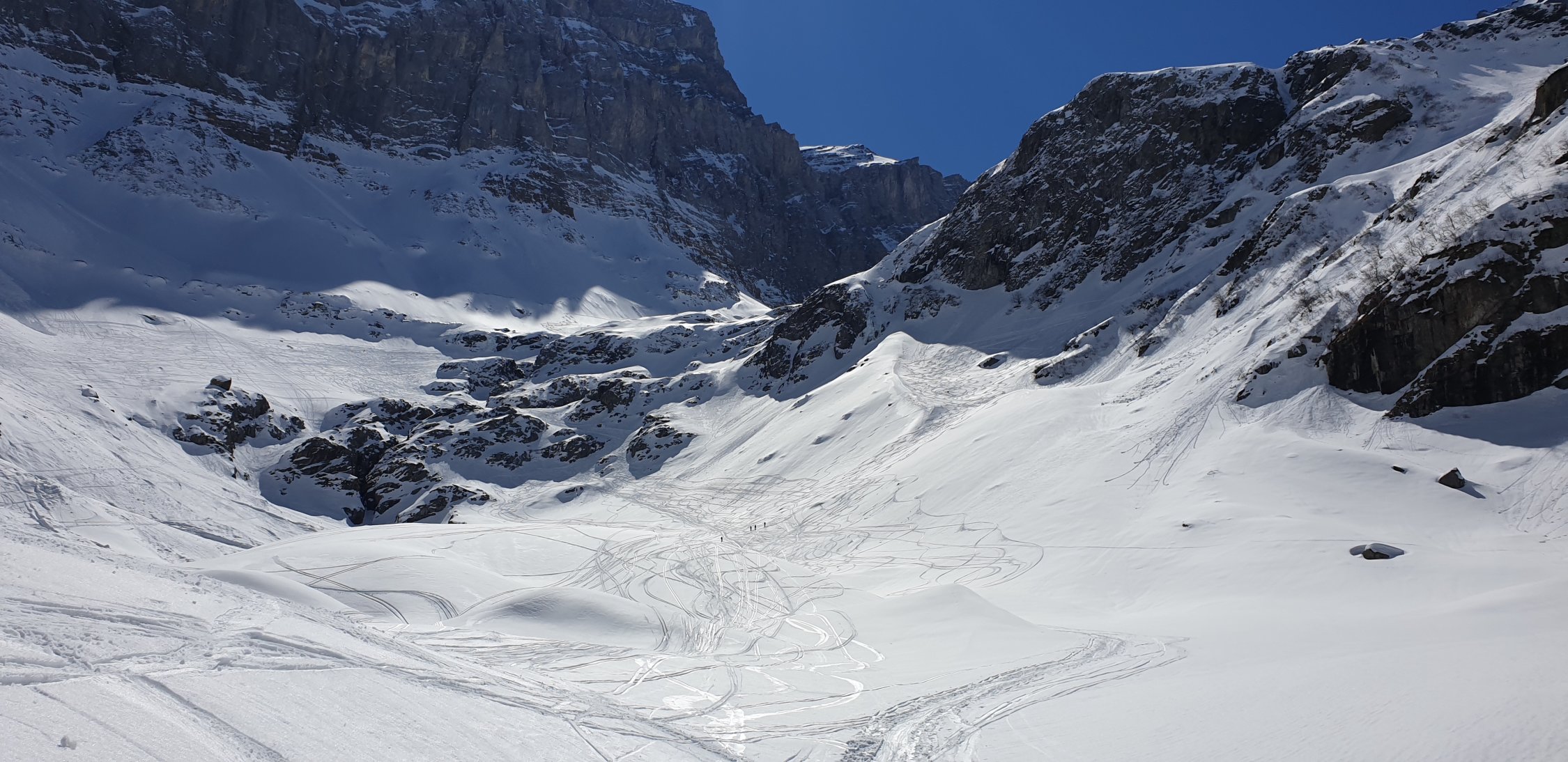 Schon sehr bald schwindet der Schnee im Tierfedh, im letzten Jahr 2018 mussten wir die Ski Mitte April 45 Minuten tragen.