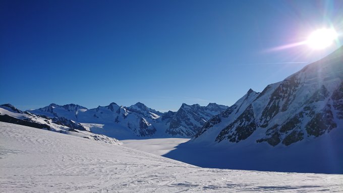 Gletscher super eingeschneit, gute Spuren vorhanden, Hollandiahütte voll belegt und wie immer liebevoll bewartet. Und der Gin aus Wachholder vo hinder em Bietschhore ufem Weg zur Wiwannihütte wie immer super fein :)