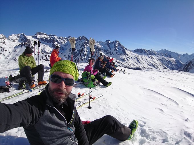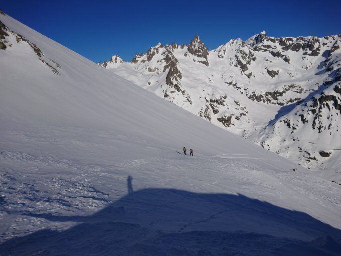 Abfahrt je nach Hanglage pulvrig oder schön zu fahrender Sulz