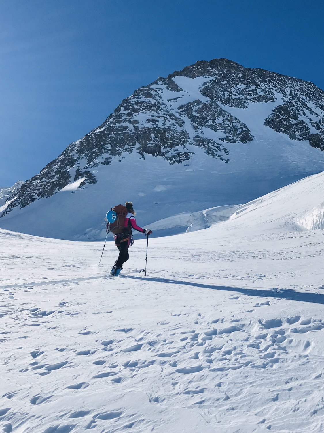 Ideale Verhältnisse und die höheren nordseitigen Ziele haben sich bei den warmen Temperaturen gelohnt. Erstaunlicherweise wenig leute im Gebiet und die paar machten die Überschreitung zur Marinellihütte. Wir sind nach der Abfahrt vom Glüschaint auf der Verzweigung der R.682 nach La Muongia weiter aufgestiegen. Auch da perfekte Verhältnisse. Ab und zu mal ein leichter Deckel drin aber immer noch gut zu fahren.