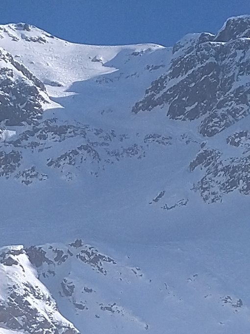 Westliche Nordabfahrt schöner Pulverschnee, schon sehr zerfahren, entsprechend unangenehm ist die Schlüsselstelle. Ganz links ist abrutschen sicher heikel, vermutlich zuletzt von Snowboard befahren, Styroporschnee mit brüchiger Oberfläche. Wenige Meter weiter rechts nicht durchgehend skibreit Schnee, einzelne Felsen schauen raus, Abstiegsspuren zu Fuß oder mit Ski, ich bin es zu Fuß runter, damit die Ski nicht leiden müssen. Ganz rechts durch das felsdurchsetzte Gelände abrutschen wurde anscheinend auch versucht, aber ob die Ski das überlebt haben? Untere steile Stelle schön zu fahren.