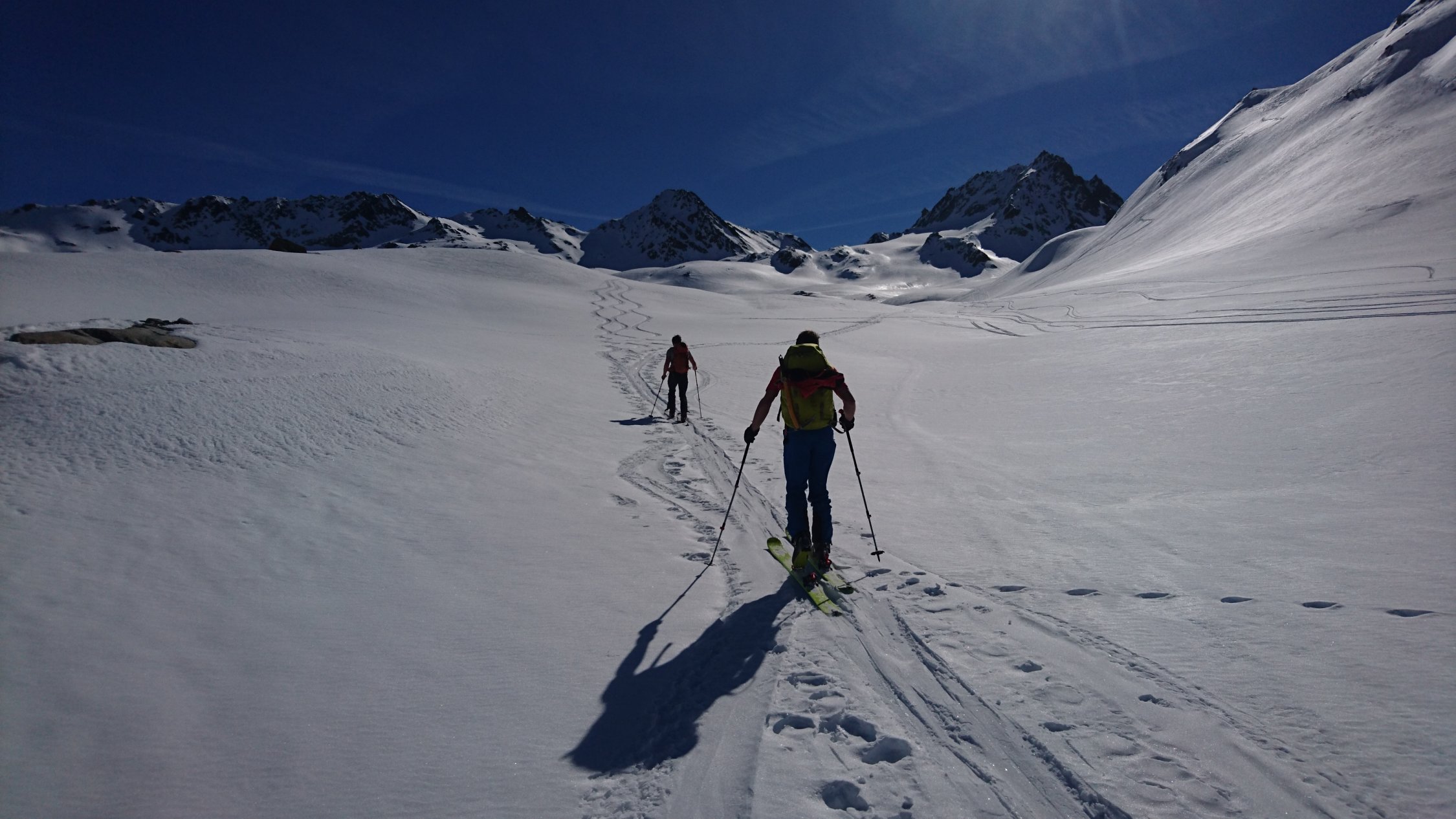 tadellos. Perfekter Trittschnee auf den Gipfel. Am Gletscher noch Pulver.