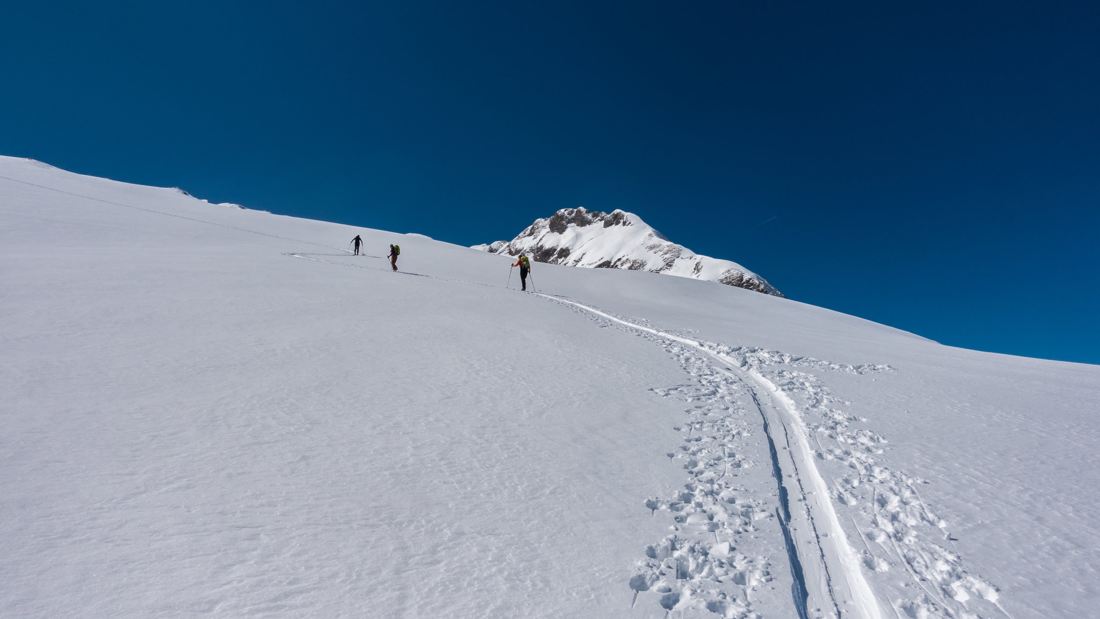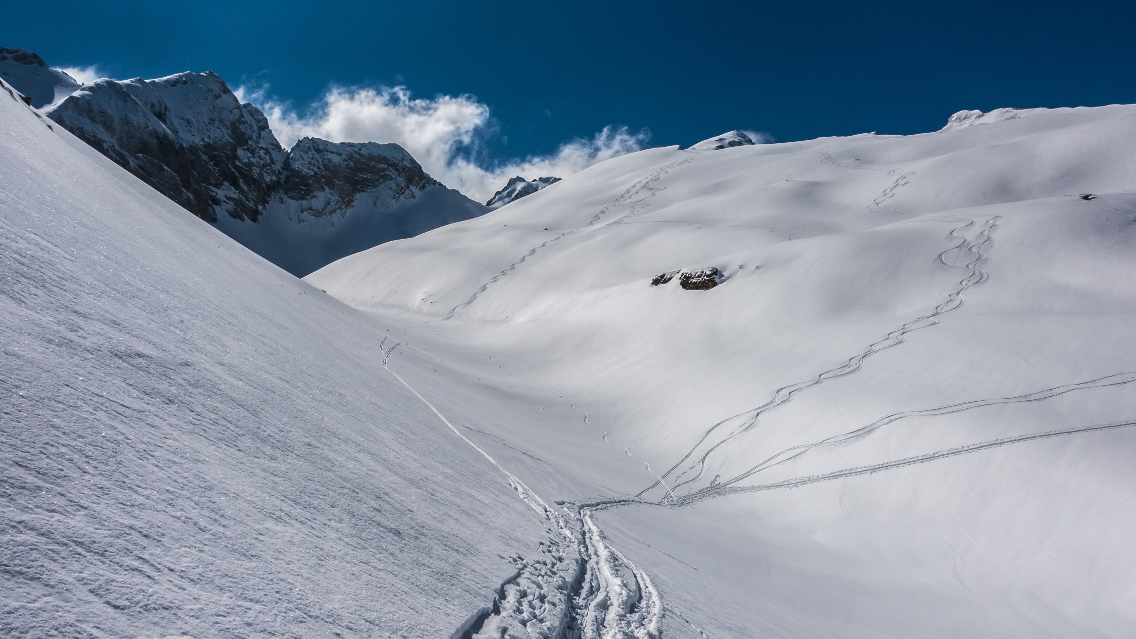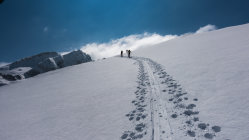 Bis am Mittag Traumwetter, windstill und angenehm warm. Auf dem Gipfel kalte Bise und ab Mittag vom Bodensee her rasch aufziehende Wolkenpakete die sich an den Bergen stauten. Abfahrt Rosswies auf ca. 10-20 cm frischem Pulver auf fester Unterlage. Gipfelhang ganz oben etwas windgepresst, danach Traumverhältnisse. Heute wenig Leute, daher noch sehr viel Platz für neue Spuren an der Rosswies. Wiederaufstieg zum Isisizgrat und Traverse zur Glannahütte. In der Nähe kurzer Aufstieg auf den südlichen Felskopf und Abfahrt über noch unberührten Steilhang, danach durch den Wald zurück zum Ausgangspunkt. Auch im Wald noch überall Pulver, hier etwas unruhige Unterlage da weniger Neuschnee.