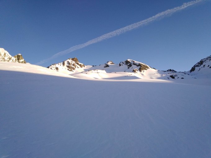 Der beschriebene Aufstieg auf den Piz d'Agnel ist nur versierten Berggängern zu empfehlen. Auch müssen zwingend sehr stabile Verhältnisse sein, denn es besteht Mitreiss-Gefahr über die unten liegenden Felsriegel. Die Traverse ist je nach Schneelage bis zu 50° Grad steil. Felsaufschwung ist leicht ( II. Grad ) aber ebenfalls ausgesetzt.