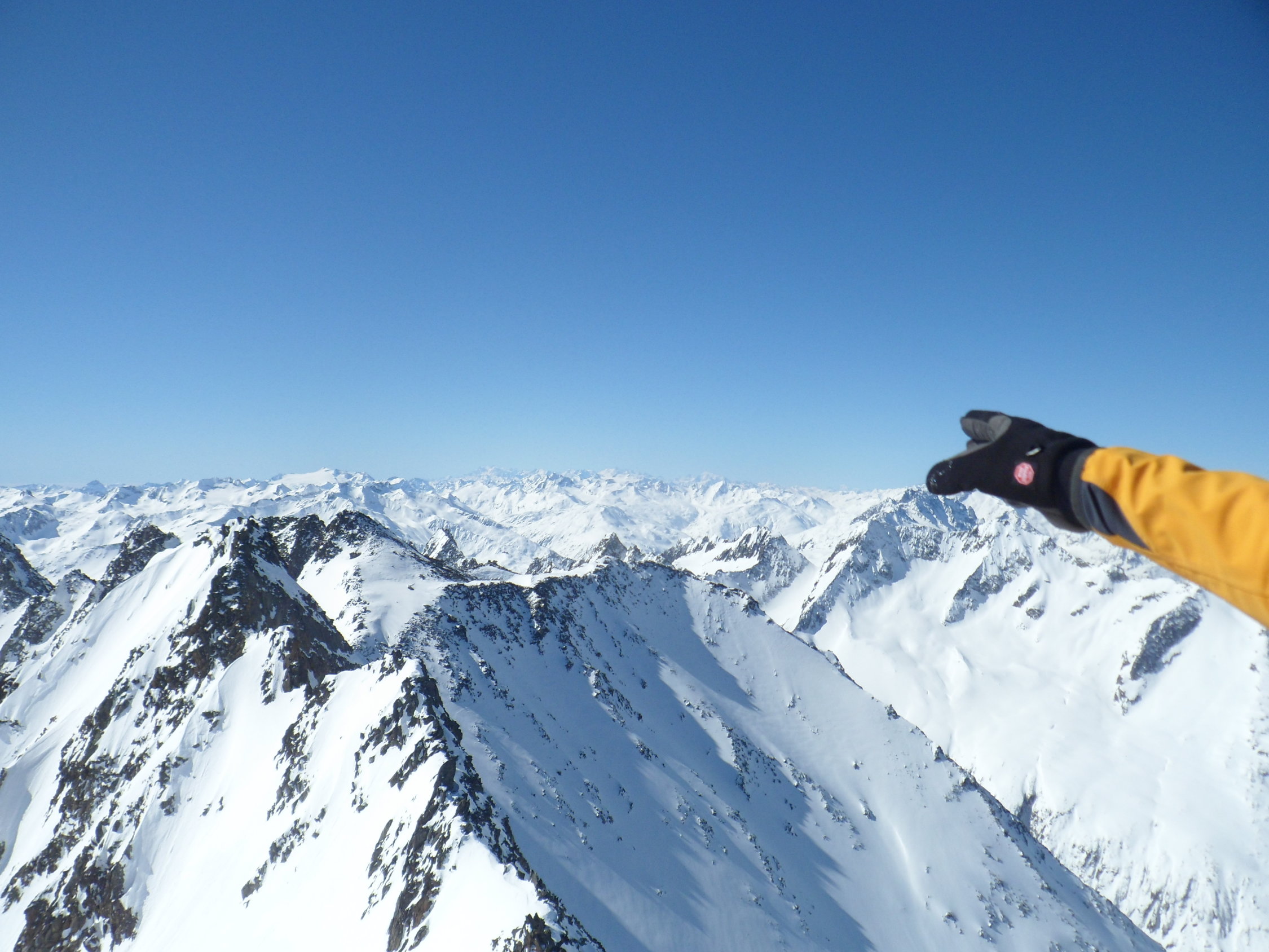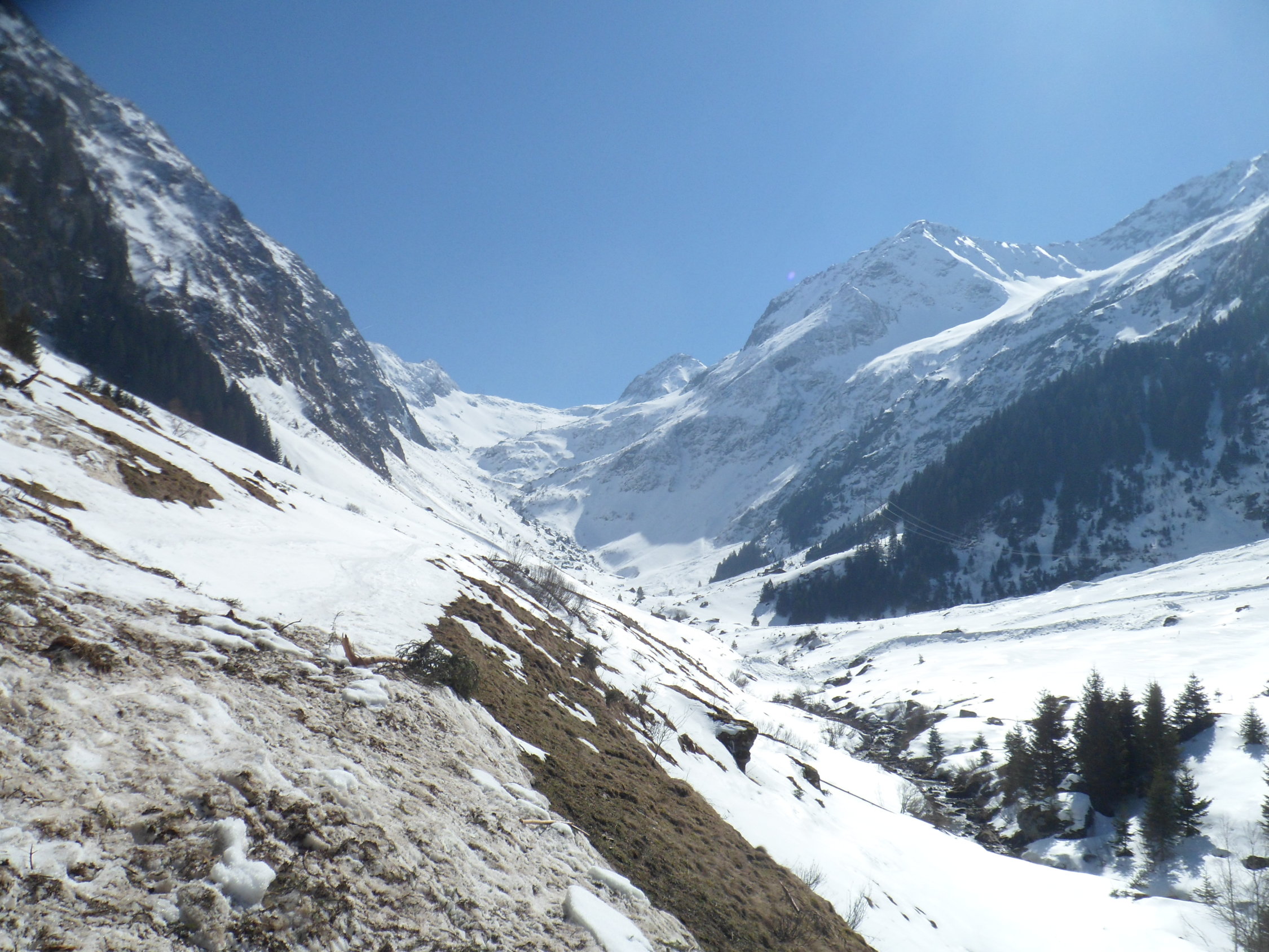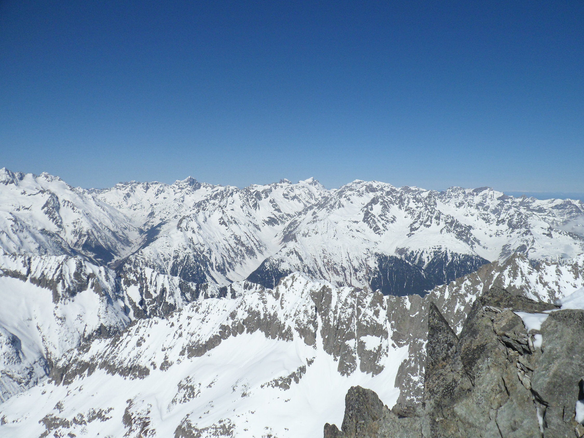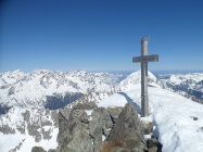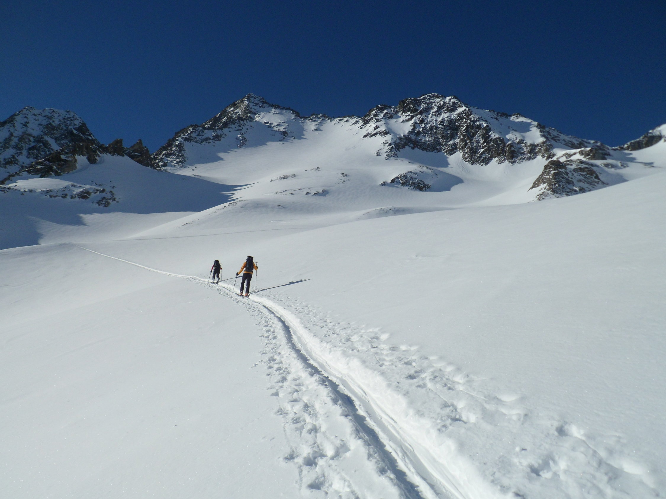 Nordseitig wunderbarer Pulverschnee (etwas windbearbeitet). Man kann mit den Skis bis zum Gipfel. Es hat auch Abfahrtsspuren. Der Schnee ist aber zerfahren und alle Stollen waren um 11 Uhr noch gefrohren. Kein Vergnügen. Zur Zeit besser zu Fuss auf den Gipfel. Die normale Route in dem vom Spillauifirn gebildeten Talmulde von und zur Etzlihütte auf den Giuv ist von einer "Jahrhundertlawine" gefüllt mit Lawinenmüll. Abfahrt in der mittleren von zwei Moränen gebildeten Talmulde ist empfehlenswert.